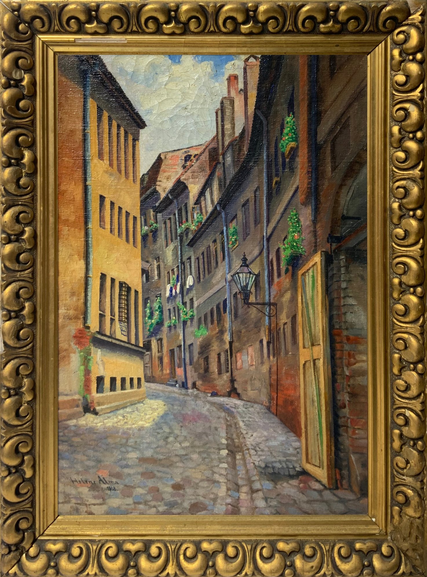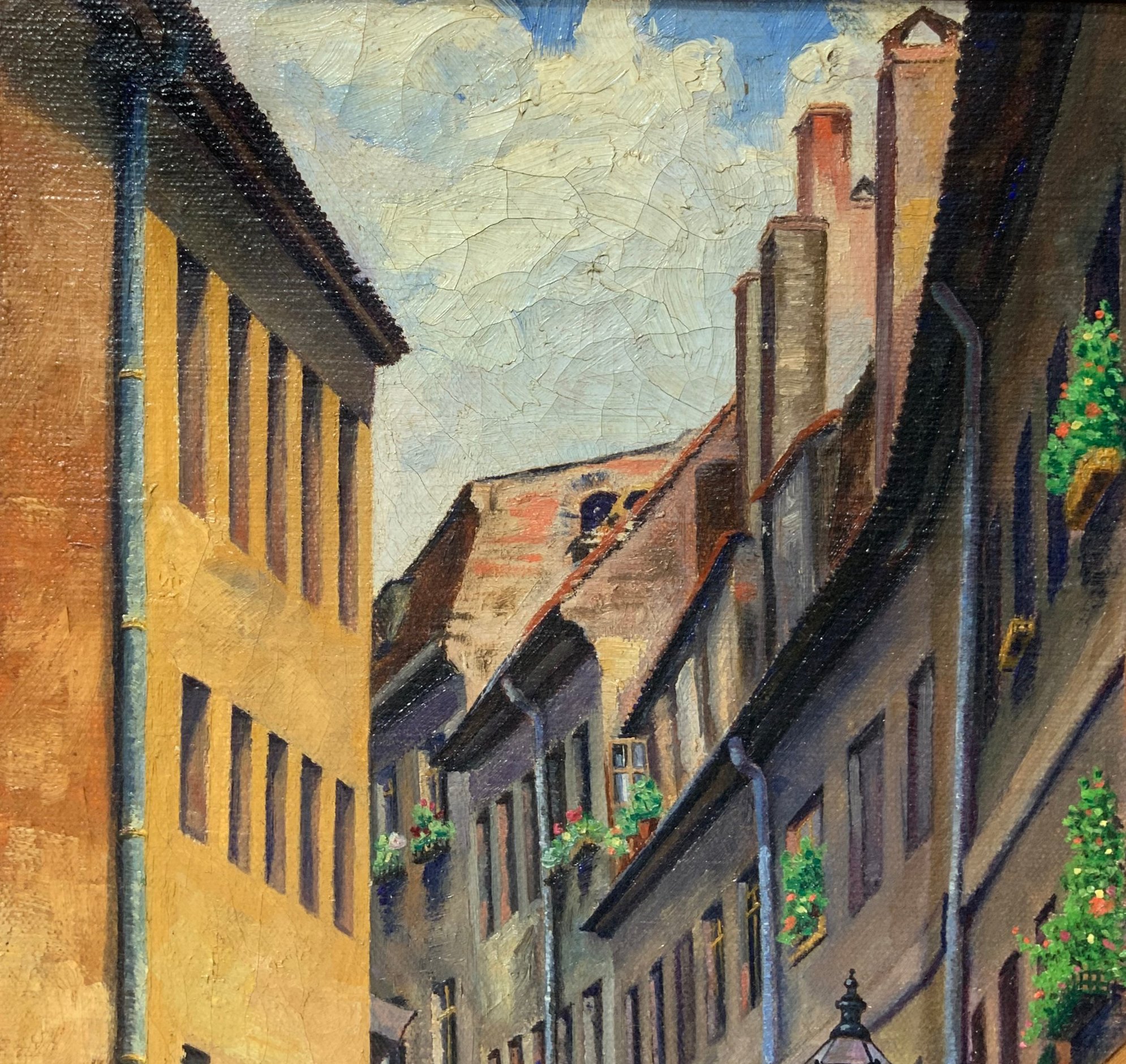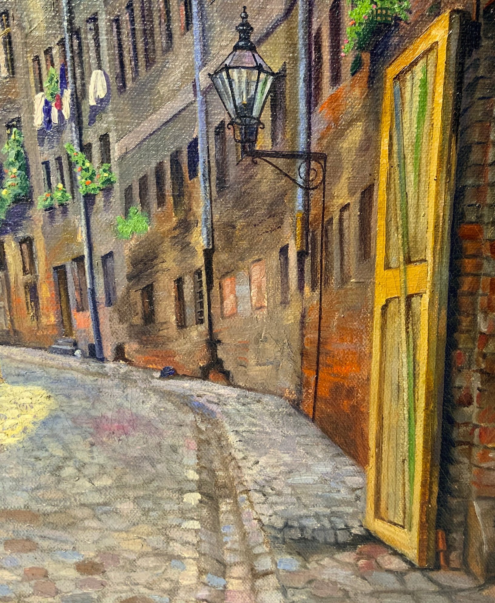 Lotto 67 | Dipinto olio su tela raffigurante scorcio di strada fra palazzi, firmato in...