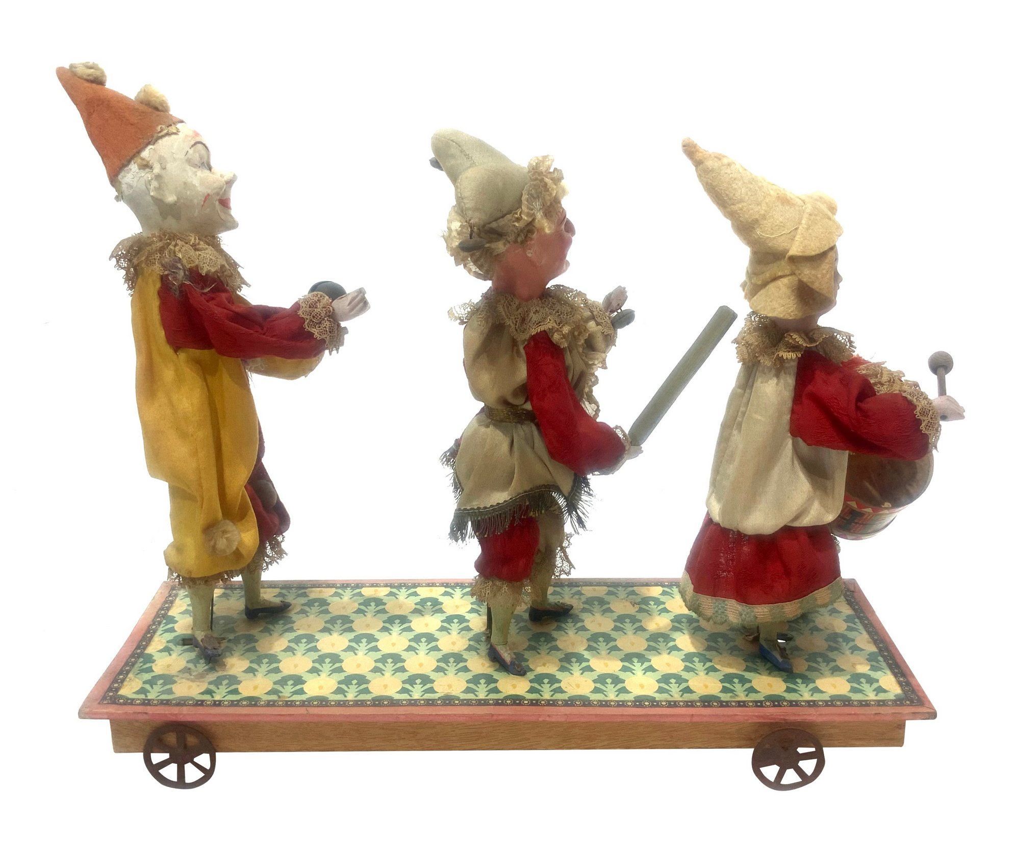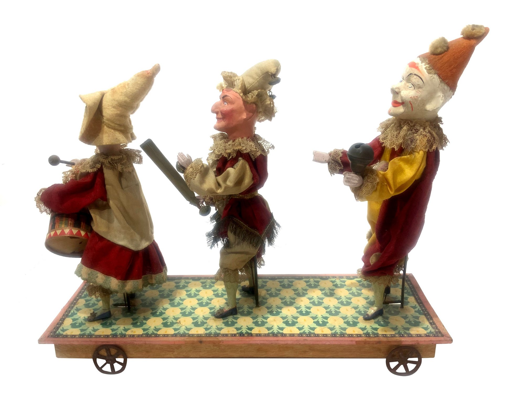 Lotto 92 | Giocattolo antico, con tre figure musicanti, fine XIX secolo. Testa, piedi e...