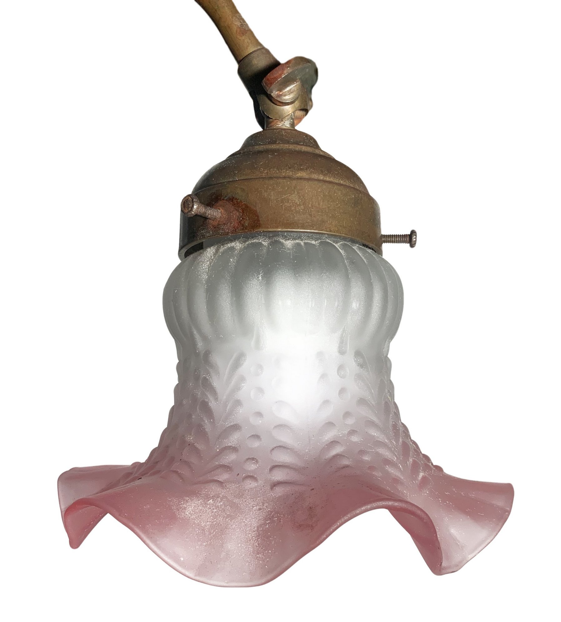 Coppia di Abat jour in ottone con campana a tulipano in vetro rosa, fine XIX...