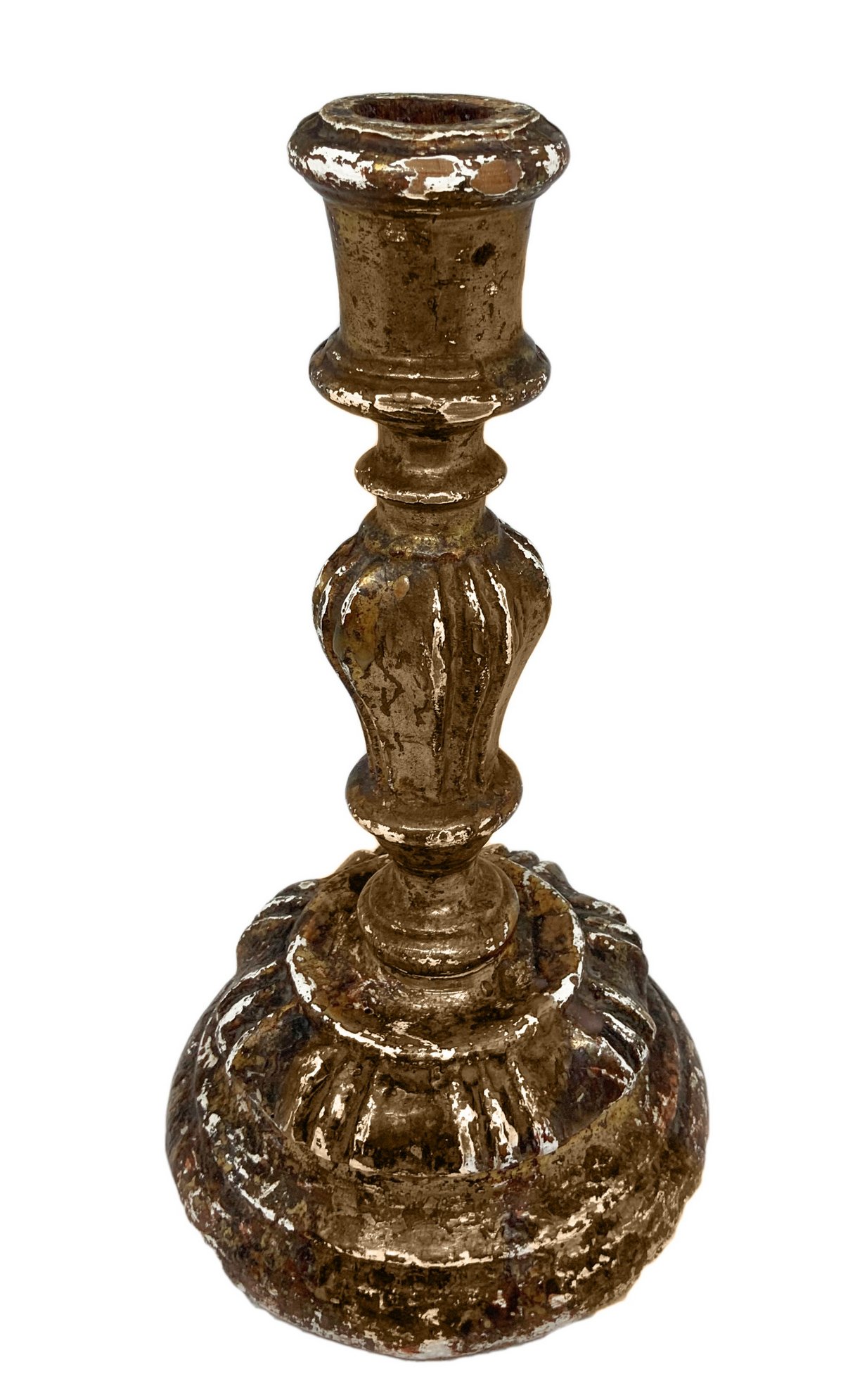 Lotto 97 | Candeliere in legno dorato a foglia, XIX secolo. H cm 24.