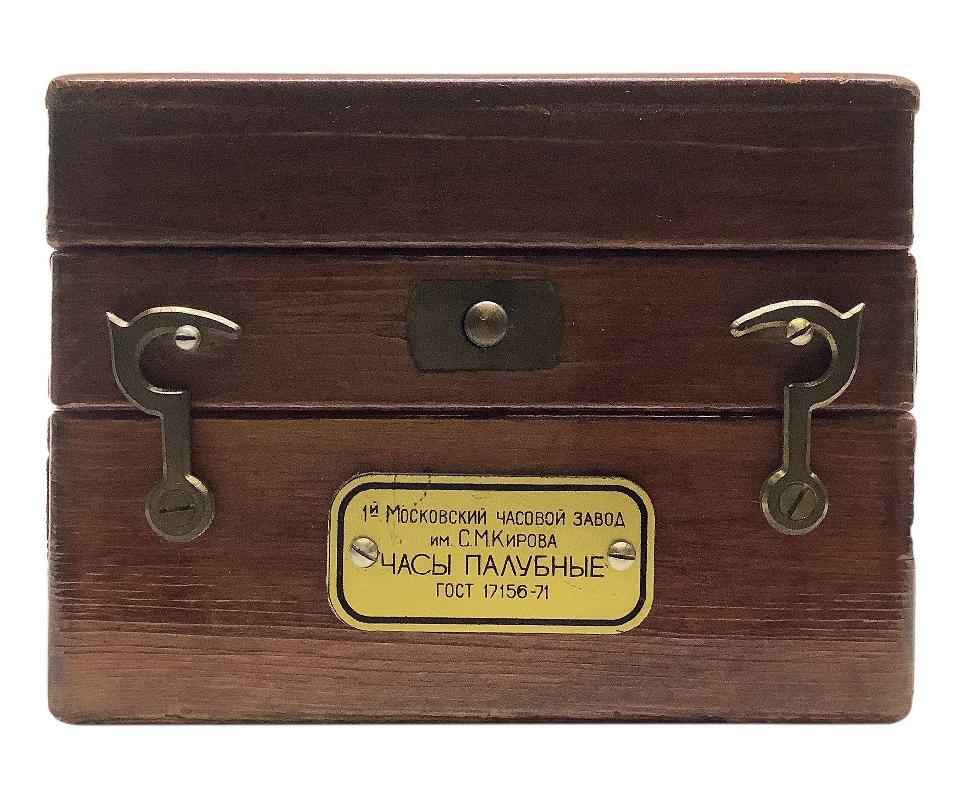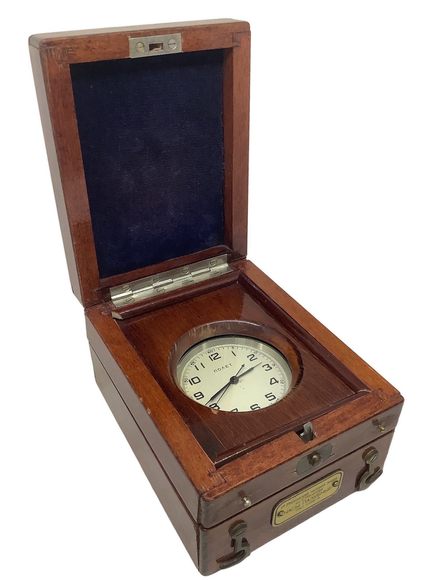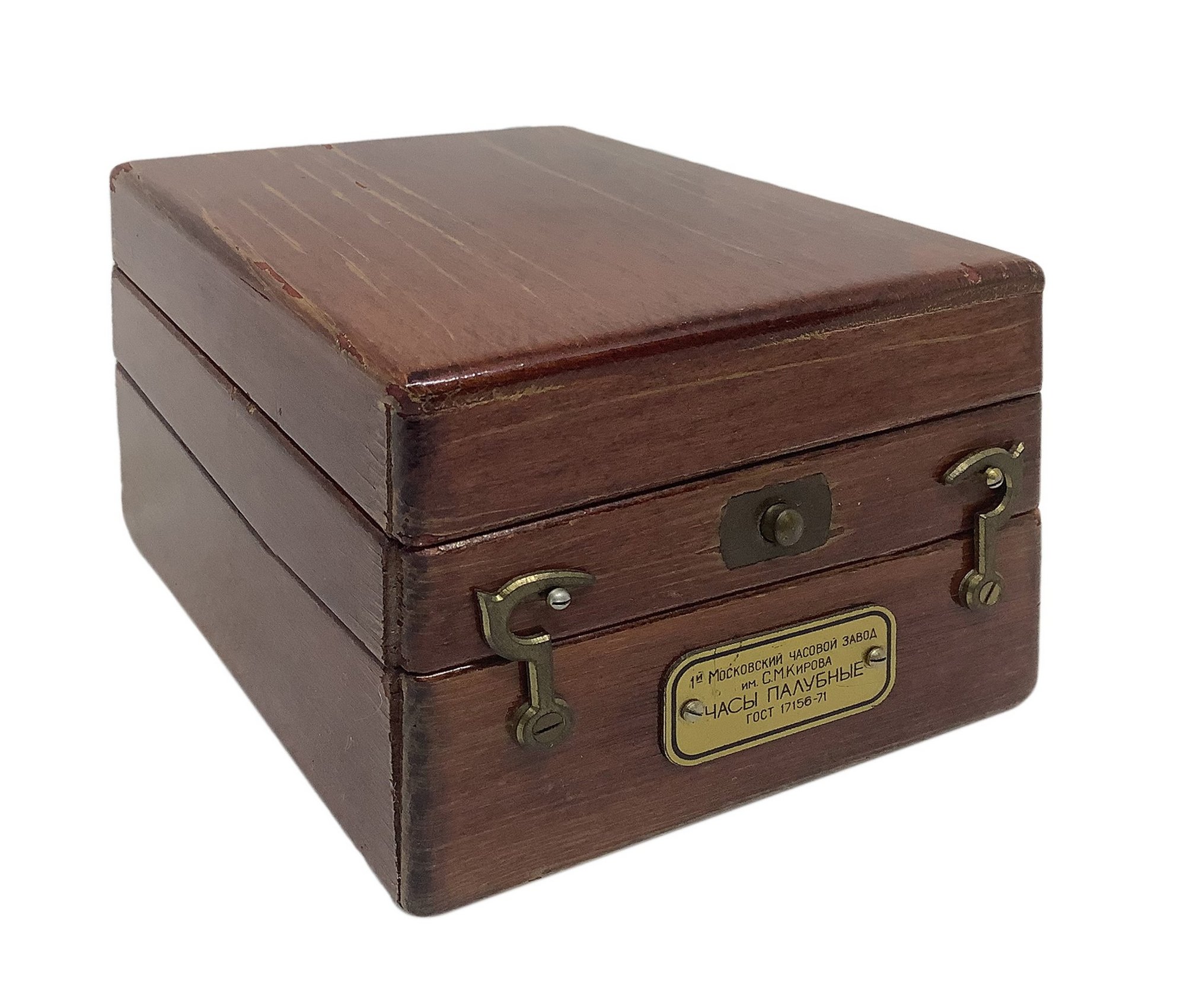 Prima fabbrica di orologi a Mosca S.M. Kirova. Anni ’30. Orologio da ponte Poljot GOST 17156-71, prodotto dal 1964. Cassetta originale in legno. H cm 7,5x 10x13.