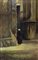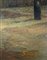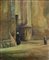 Dipinto ad olio su tavoletta raffigurante donna che va in chiesa. Cm...