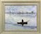 Dipinto ad olio su lastra di marmo Azul Macaubas raffigurante barca con...