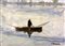 Dipinto ad olio su lastra di marmo Azul Macaubas raffigurante barca con pescatore, V. Ribaudo (Palermo 1937). Cm 30,5x38,5. Firmato in basso a destra V. Ribaudo.