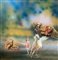 Dipinto a tecnica mista su masonite raffigurante scena fantastica intitolato “Ballerina e cavallo” V. Ribaudo (Palermo 1937). Cm 50x70. Firmato V. Ribaudo e datato 2010 in basso a destra.