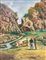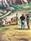 Dipinto ad olio su tela raffigurante scena campestre con personaggi, V....