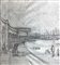 Disegno su carta raffigurante il Porto di Catania con gli archi per la ferrovia (Catania, Sicilia), inizi XX secolo. Disegno su carta a penna e matita. Mm 200x320. Testimonianza storico-locale.
