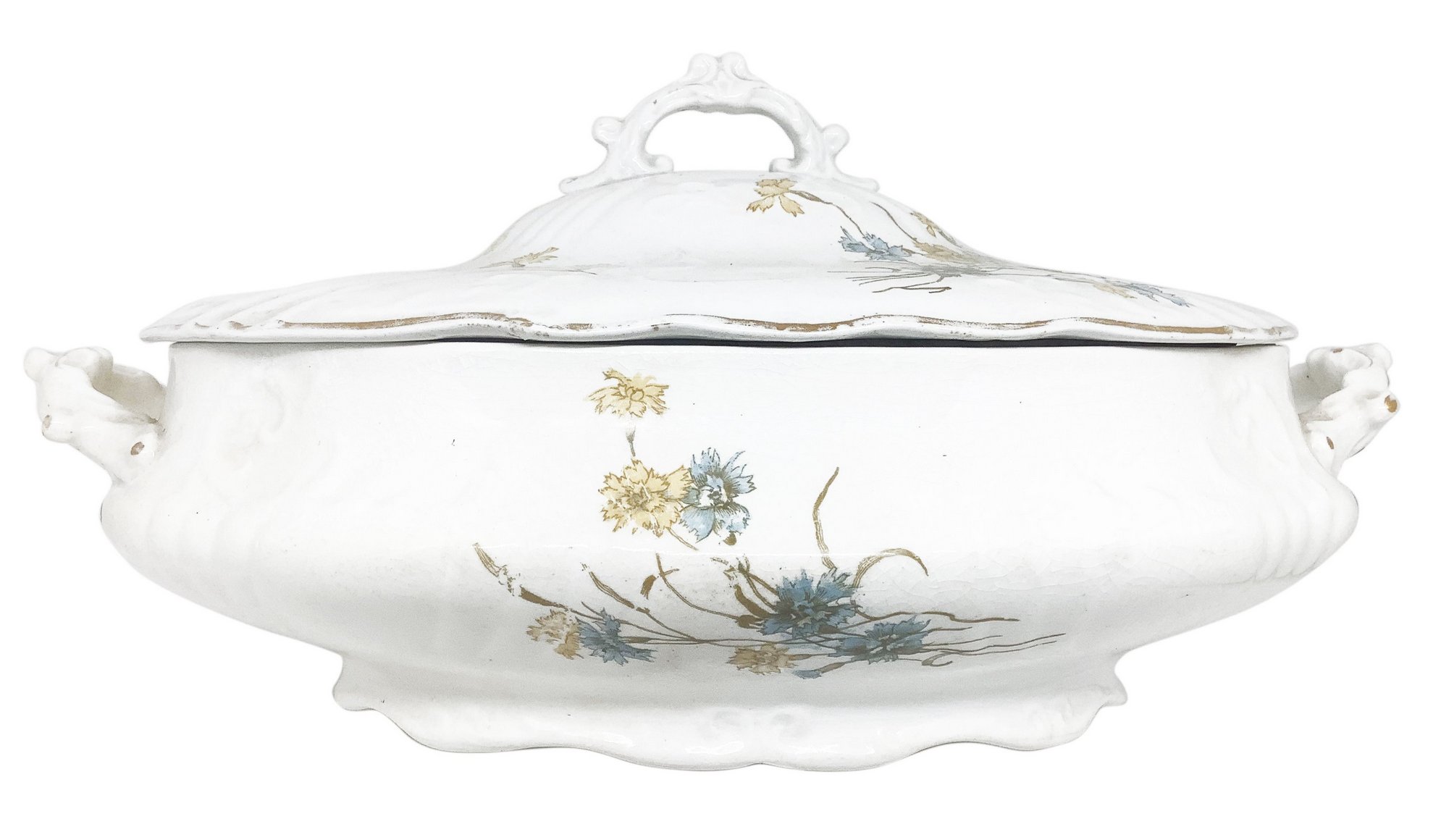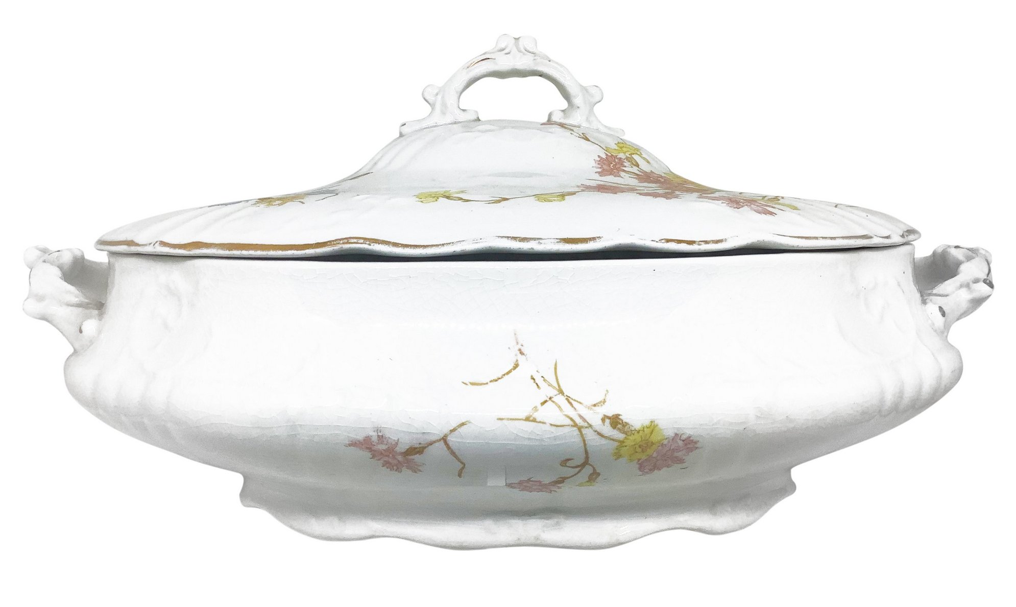 Lotto 271 | Zuppiera in porcellana fondo bianco e decorazione a ramage e fiori,...