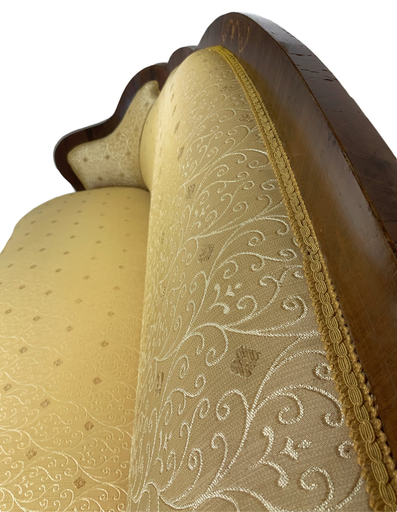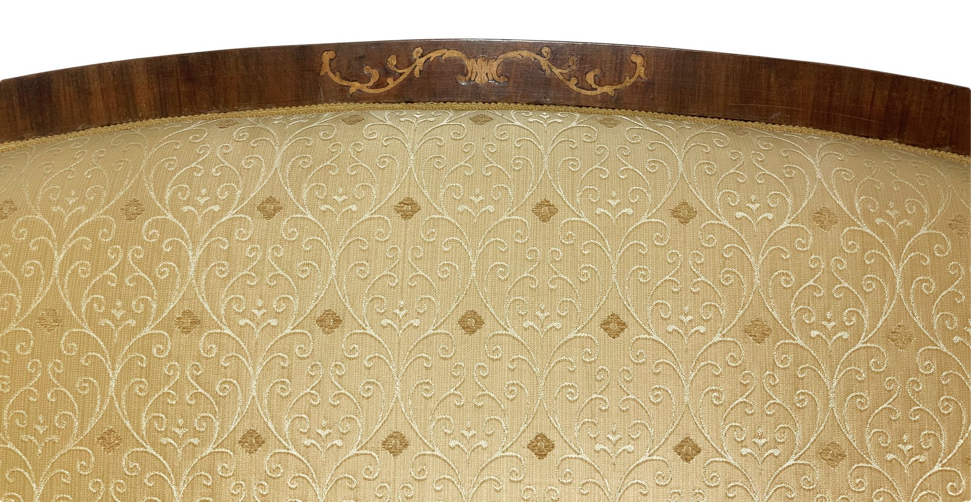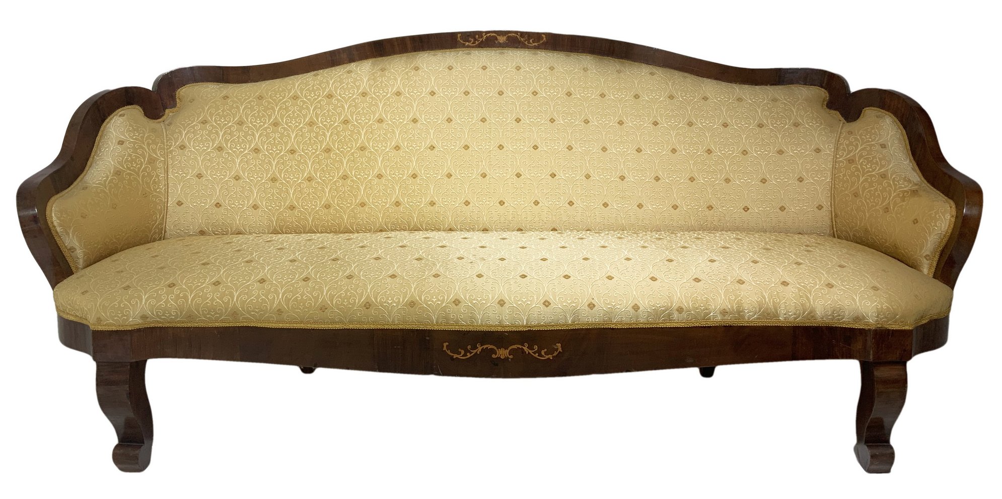 Divano in legno di palissandro con intarsi centrati alla base della seduta e alla spalliera, Luigi Filippo, XIX secolo. H cm 92xcm 210, profondità cm 70.