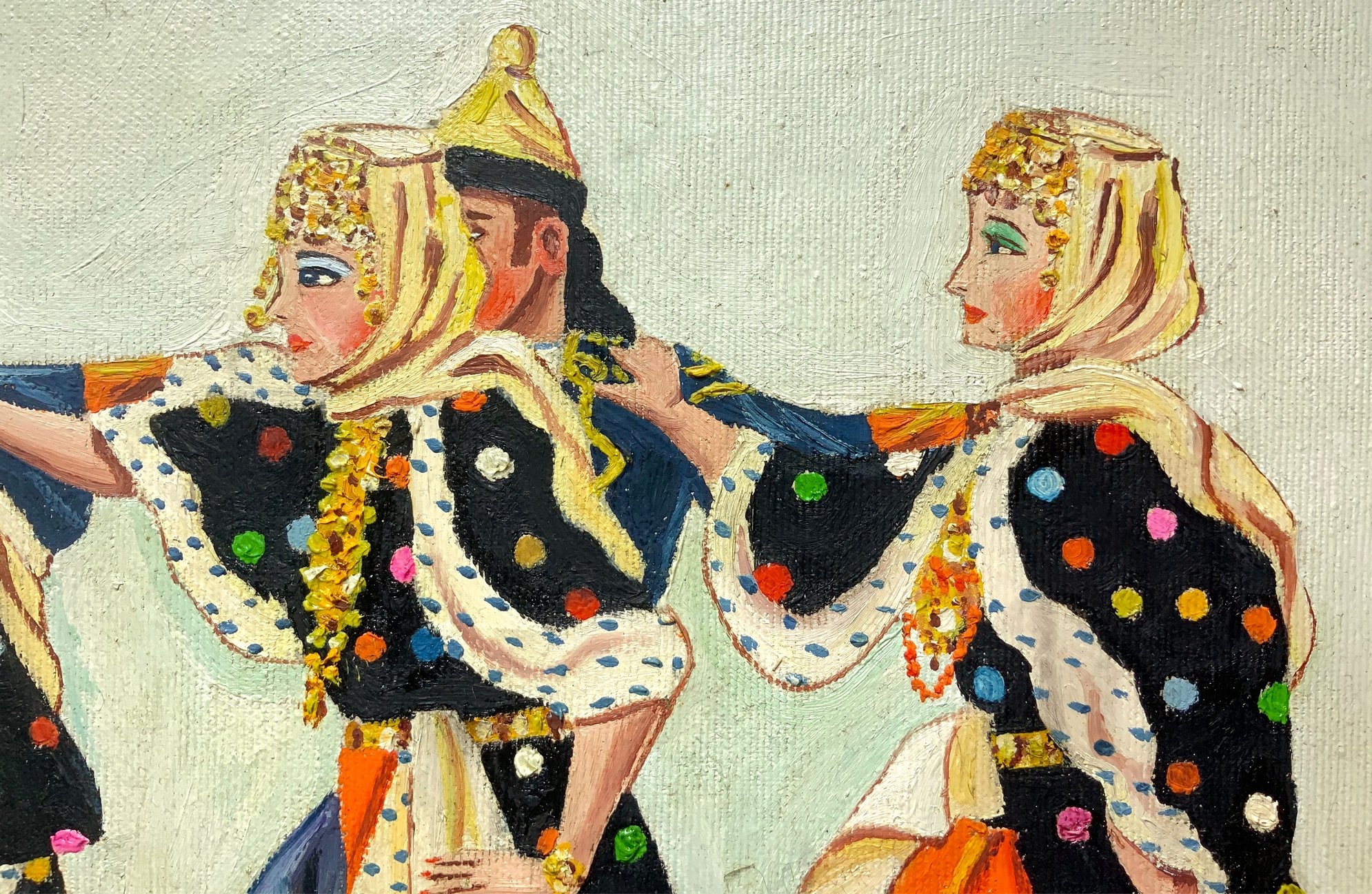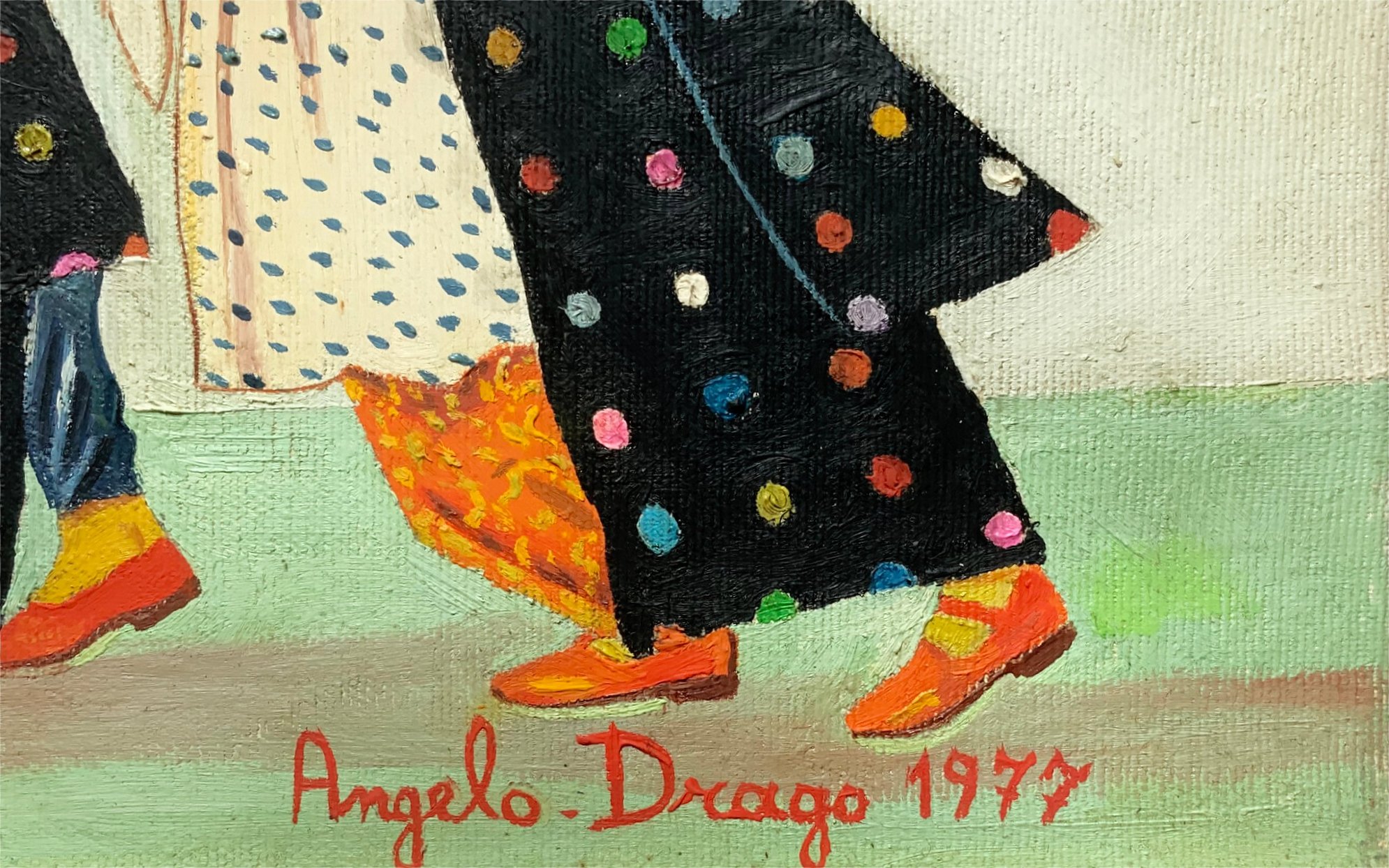 Dipinto naif ad olio su tela raffigurante personaggi orientali di Drago Angelo (Catania 1930- Catania 2020). Cm 60x50. Firmato e datato 1977 in alto a sinistra. Angelo Drago vince il Premio Leone d'oro, Firenze 1979, 1° Premio internazionale Occasionart , Milano ai frati "Naif". Bibiliografia: "I naifs italiani", Mario De Micheli, Renzo Margonari, Ed. Passera e Agosta Tota, prefazione di Cesare Zavattini pg 156. Catalogo Bolaffi dei Natif Italiani, Giulio Bolaffi Editore 1973, pg 60.