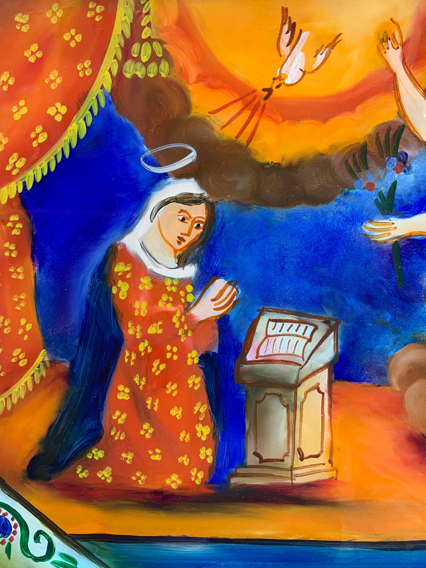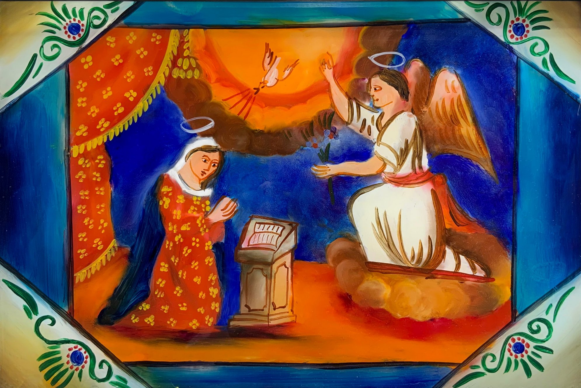 Pittura su vetro raffigurante “Annunciazione”, inizi XX secolo. Provenienza...