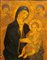 Dipinto a tempera su terracotta raffigurante Madonna con Gesù Bambino e Angeli, tratta da Duccio da Buoninsegna, inizi XX secolo. Manifattura Milani, Montopoli in Val D'Arlo, Decoratore Campani P. Cm 37,5x29.