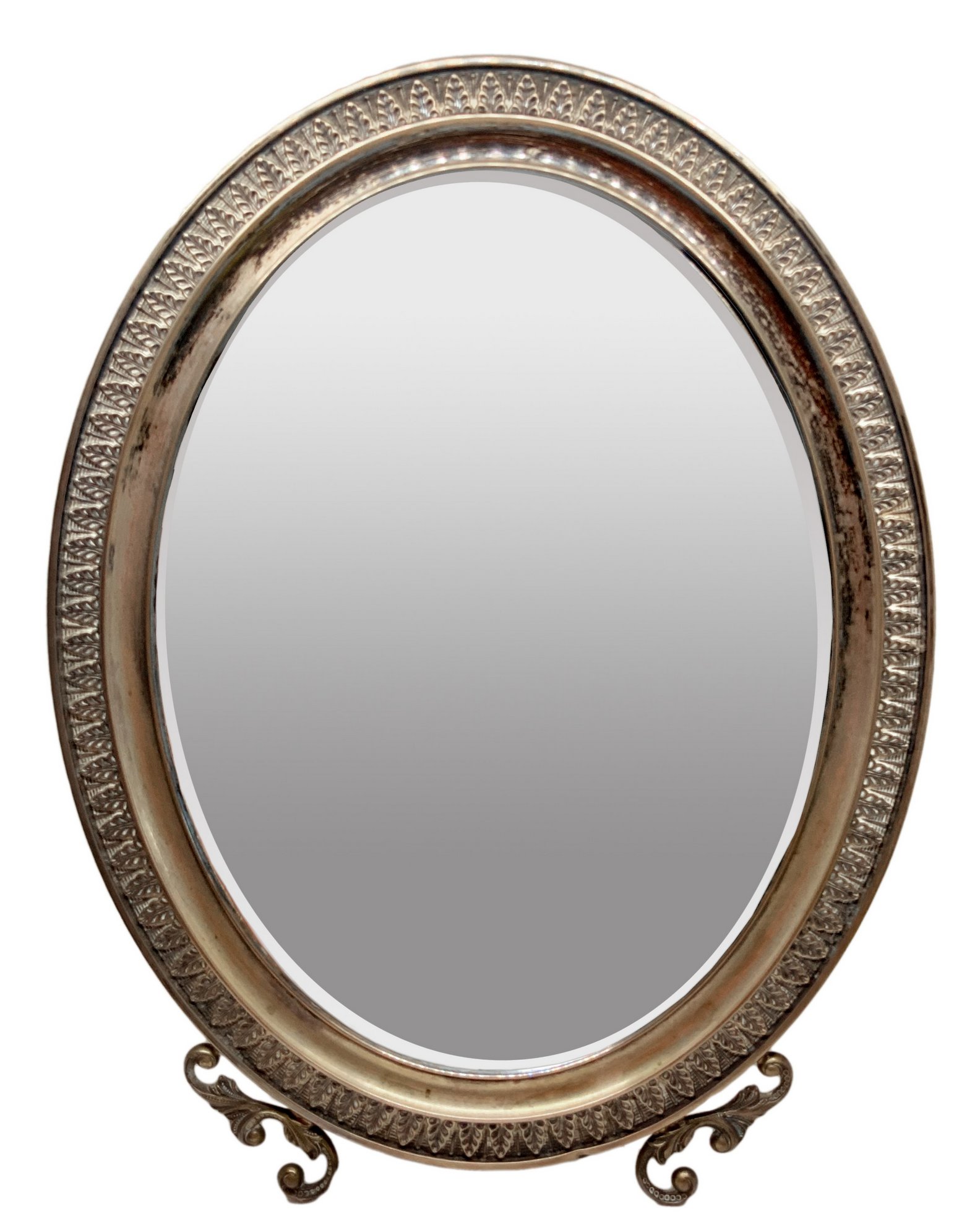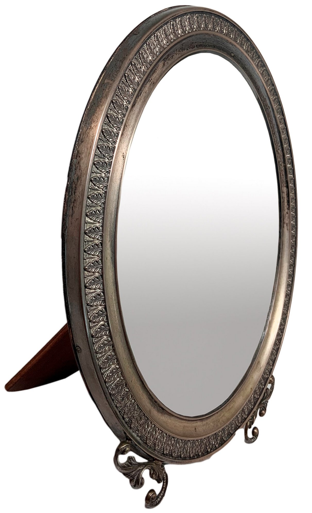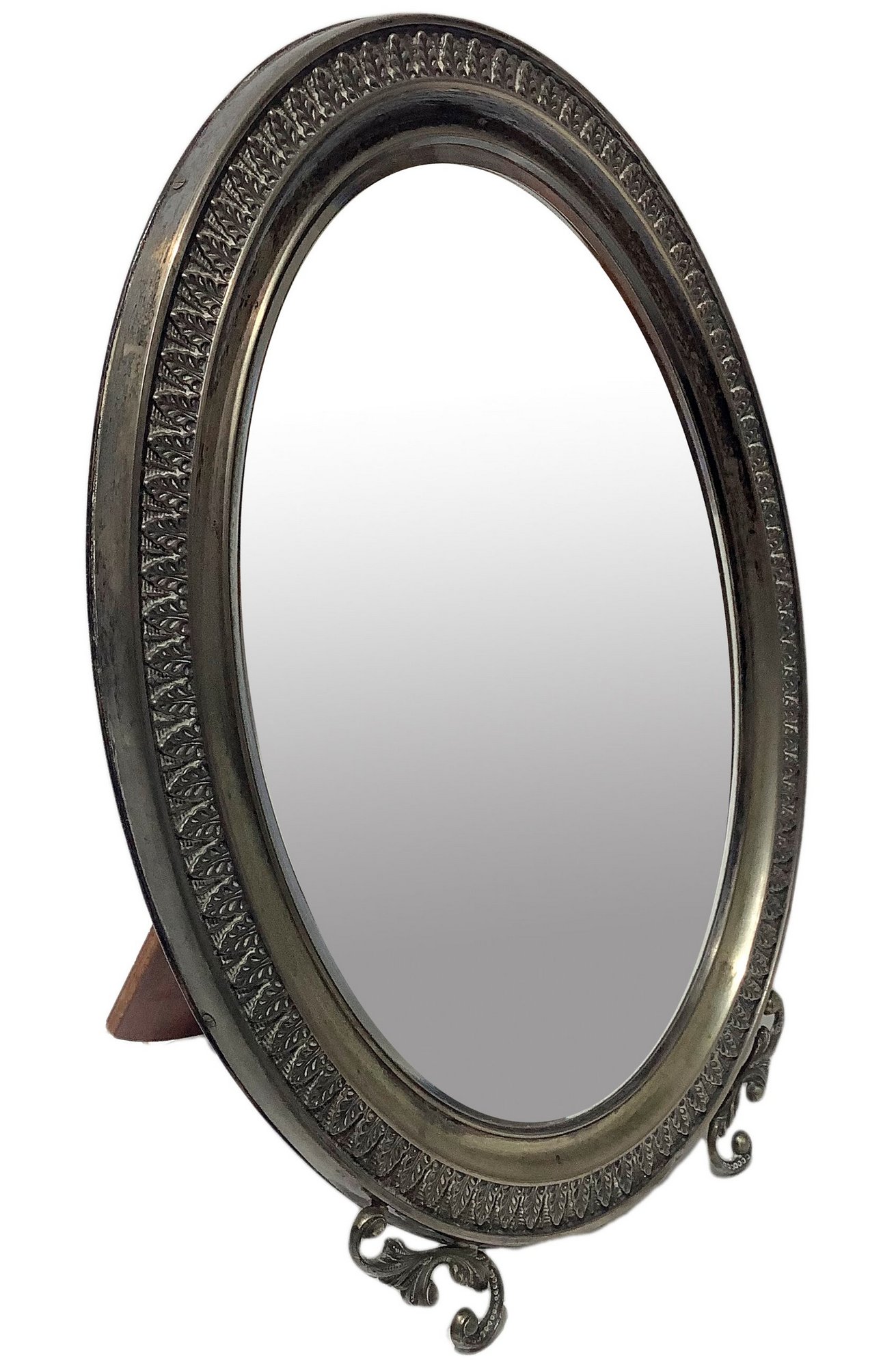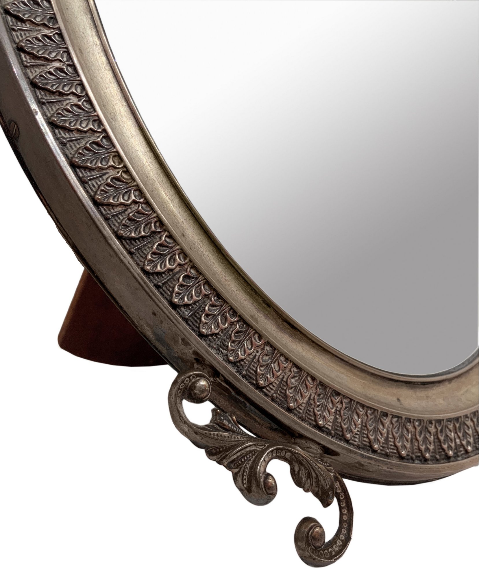 Lotto 355 | Specchio da tavolo con cornice in argento 800, XX secolo. Lavorato in stile...