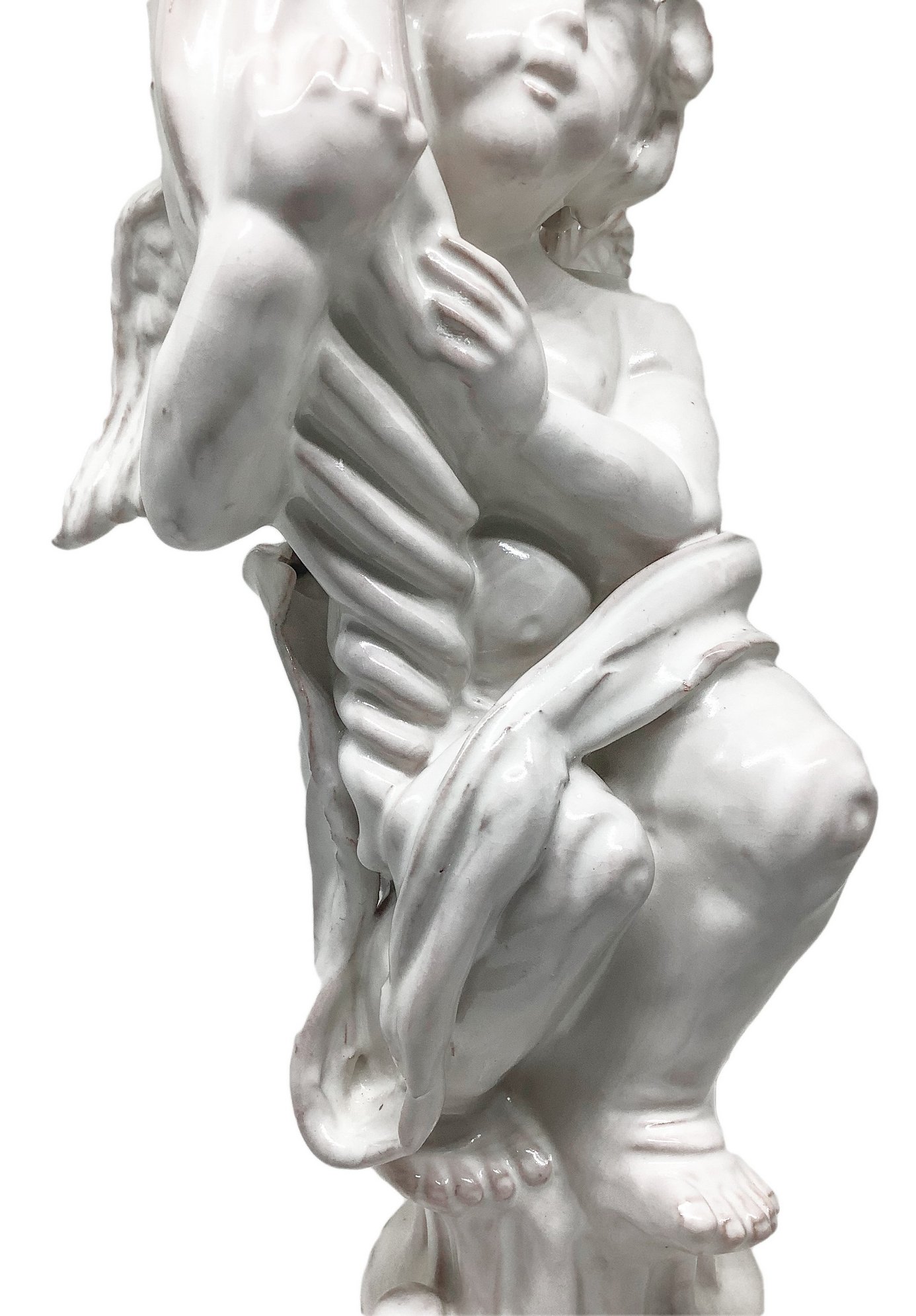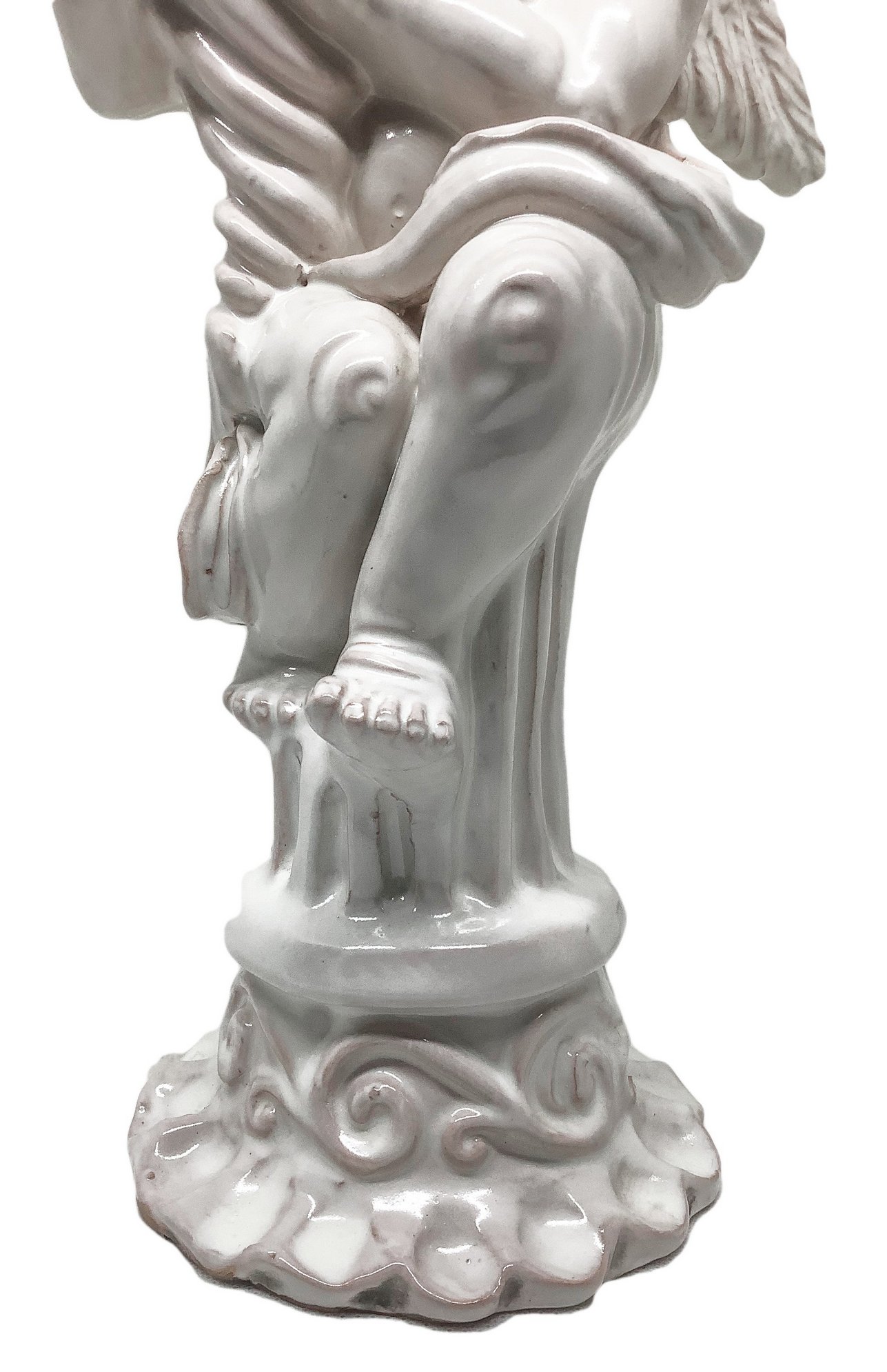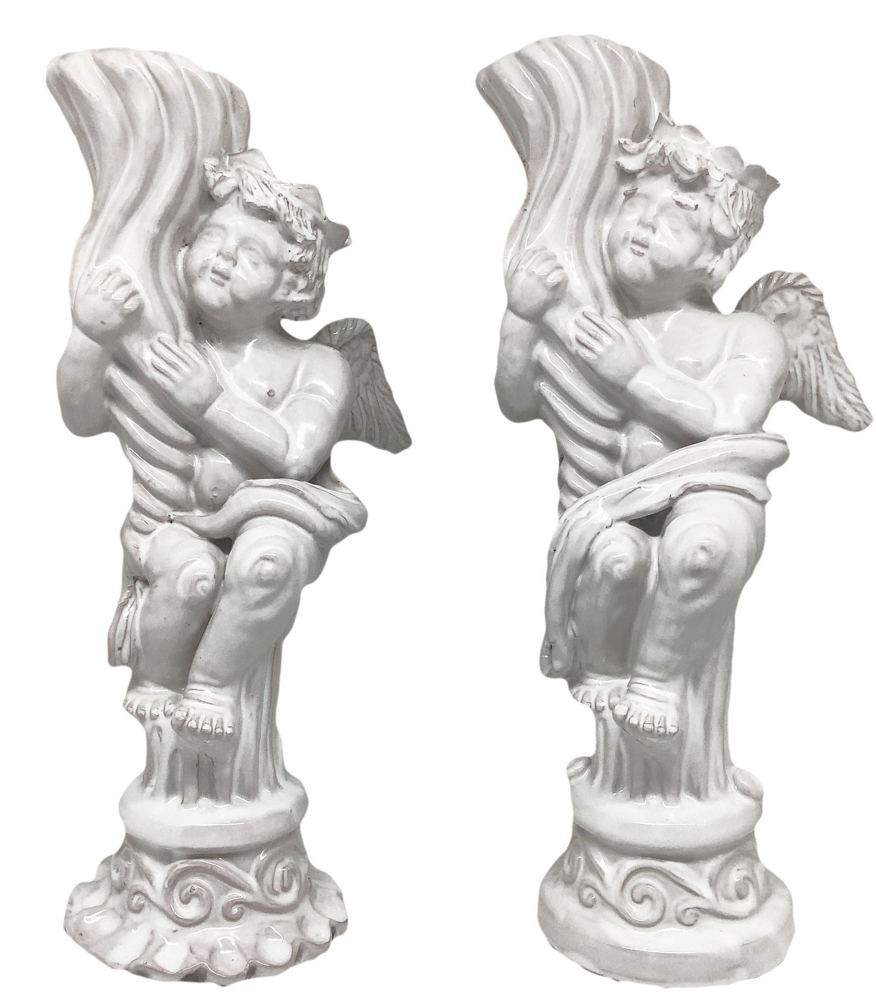 Lotto 359 | Coppia di candelieri in maiolica bianca di Caltagirone con puttini...