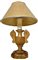 Piccolo lume con base in legno dorato a forma di anfora con paralume in...