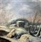 Dipinto ad olio su tela rotonda raffigurante paesaggio innevato, seconda metà...