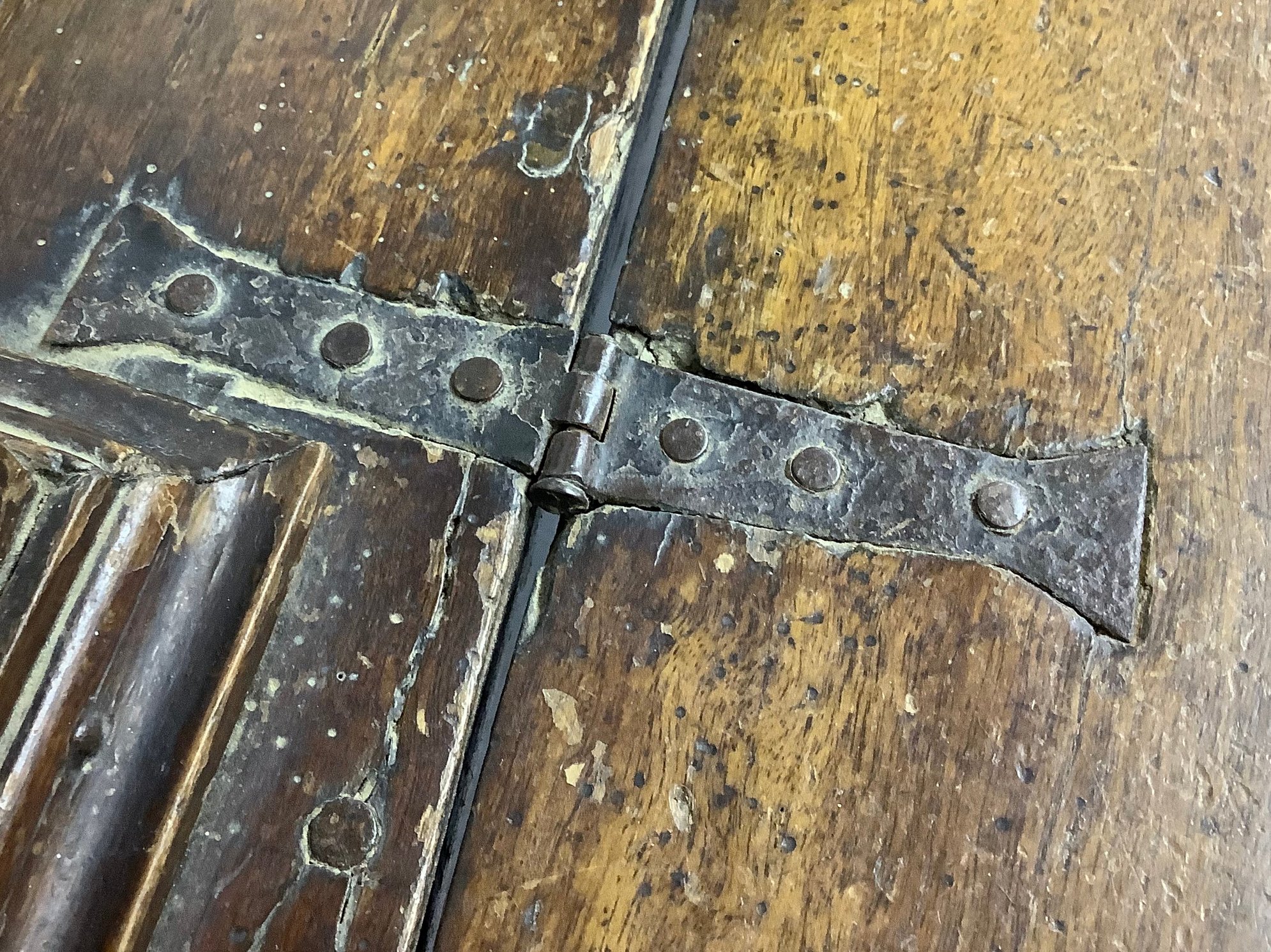 Panca in legno di noce con spalliera e seduta pieghevole, XVII secolo....