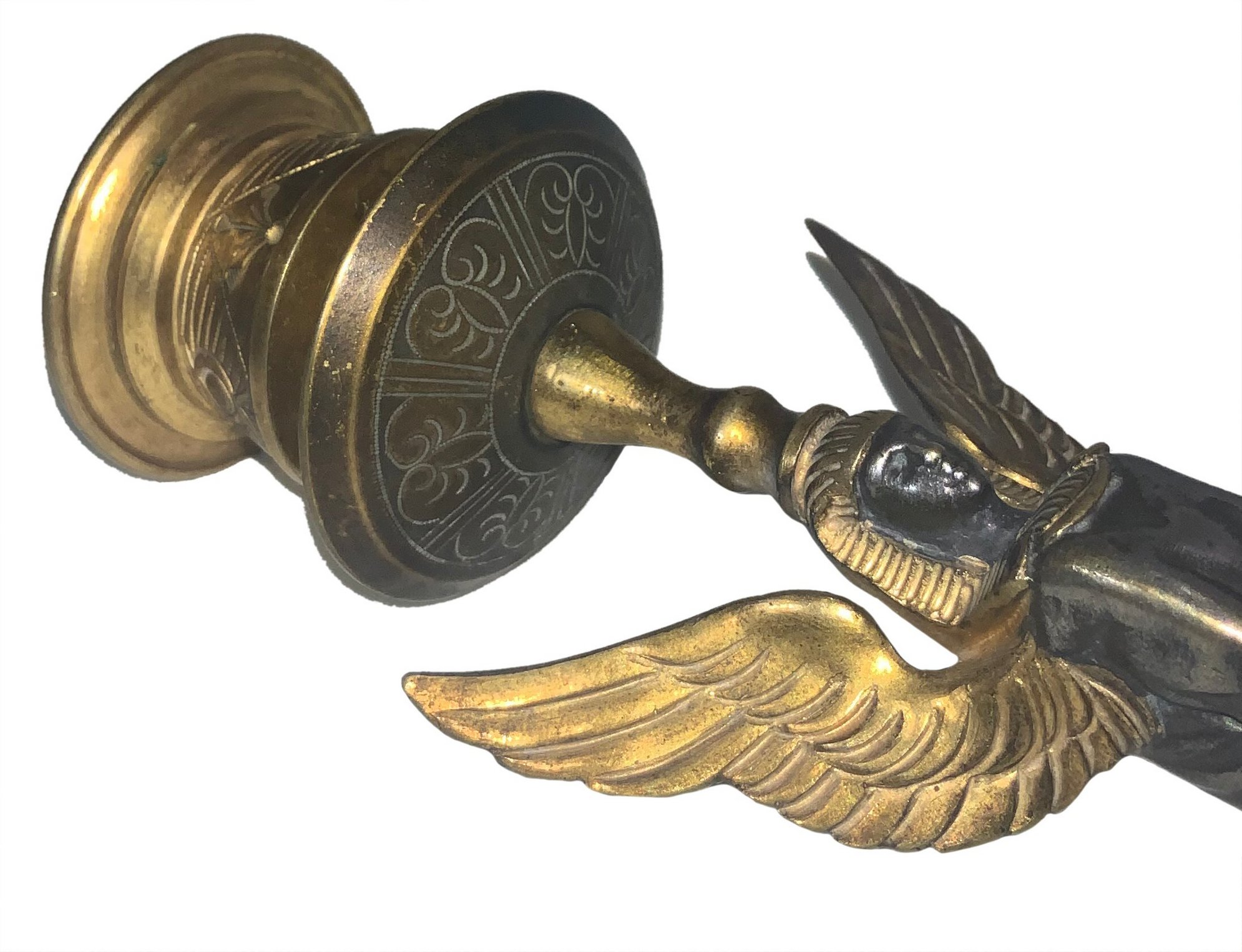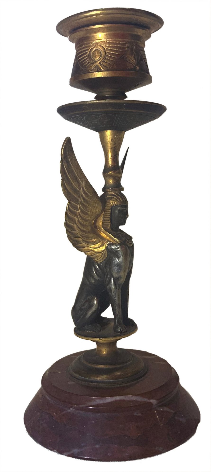 Lotto 452 | Coppia di portacandele monoforo, Impero, con bronzo e sfingi, XIX secolo. H...