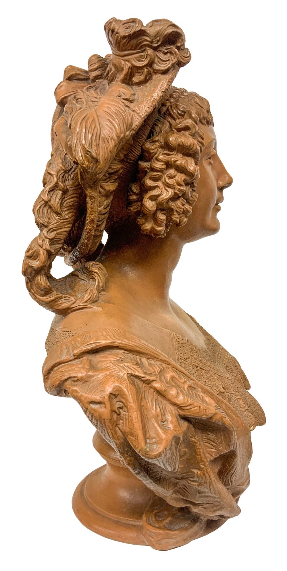 Mezzobusto di donna in terracotta di Jean Rordorf, scultore austriaco del XIX secolo che ha esposto al Salone di Vienna nel 1871.
