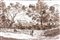 Disegno di autore anonimo raffigurante strada di campagna con personaggio,...