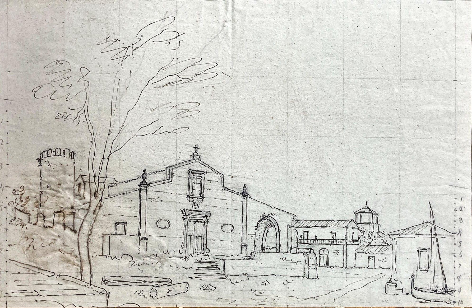 Disegno di autore anonimo raffigurante Chiesa S.Maria Bambina (Ognina, Catania, Sicilia), XIX secolo. Disegno a inchiostro su carta vergellata. Mm 206x307. Testimonianza storico-locale.