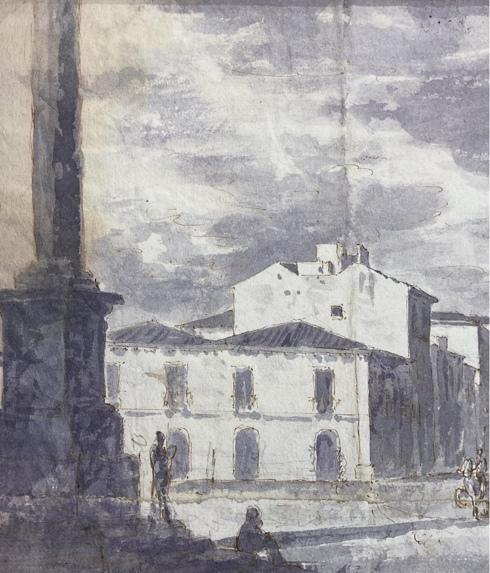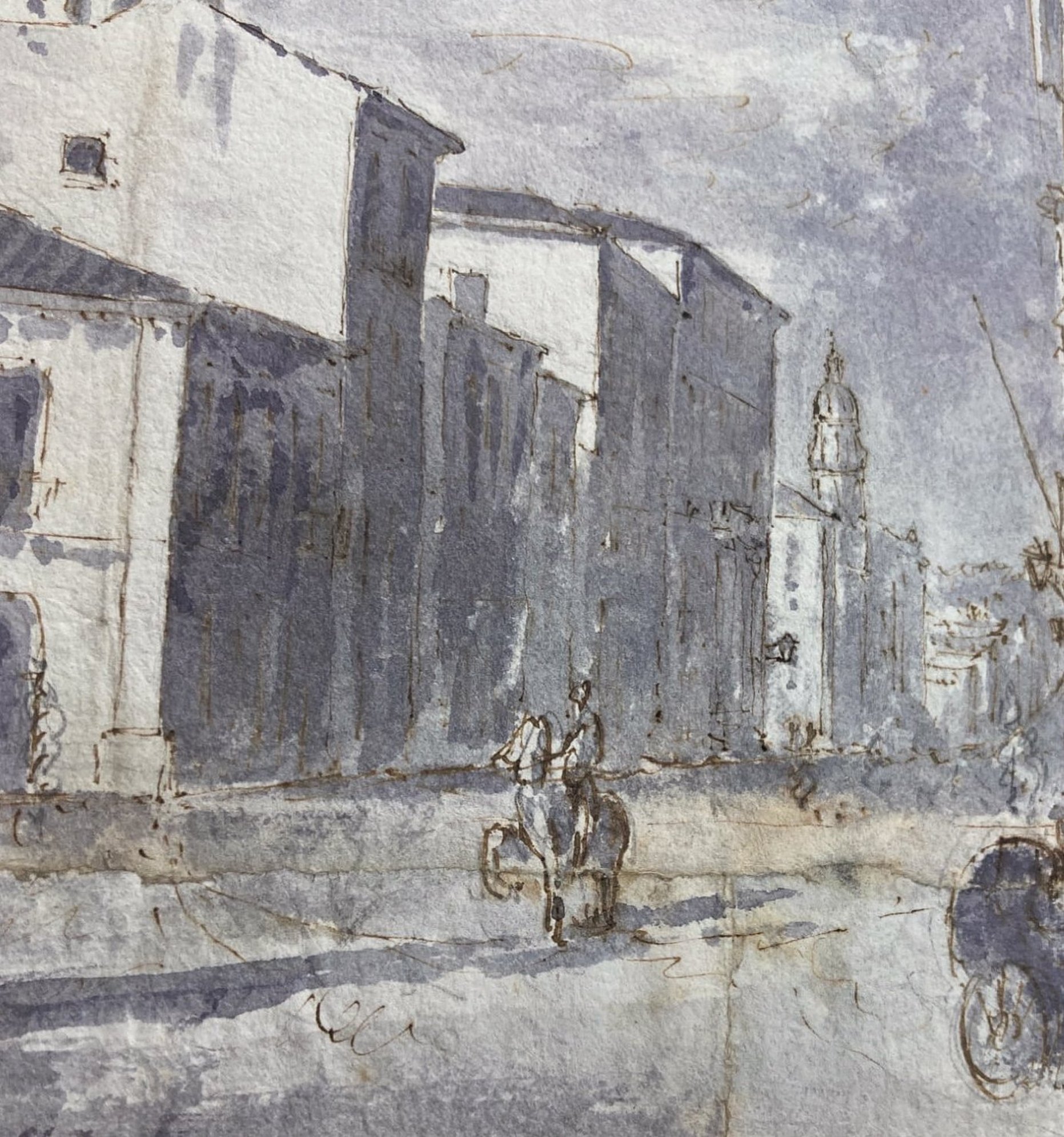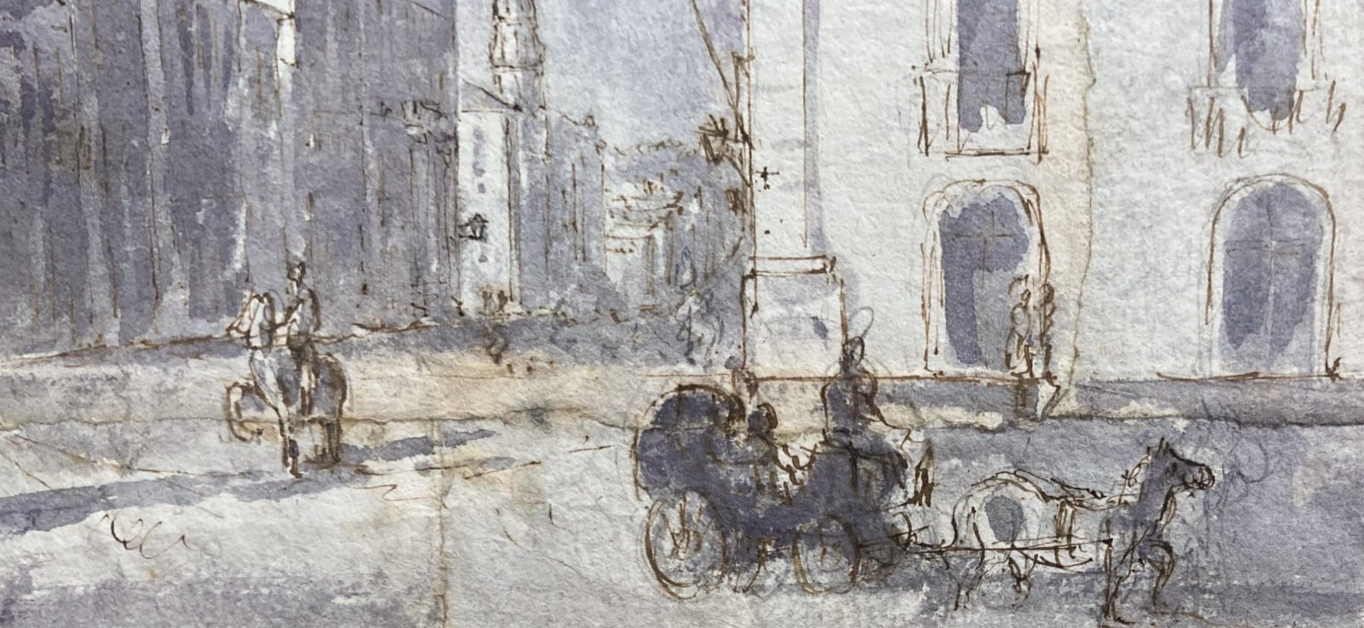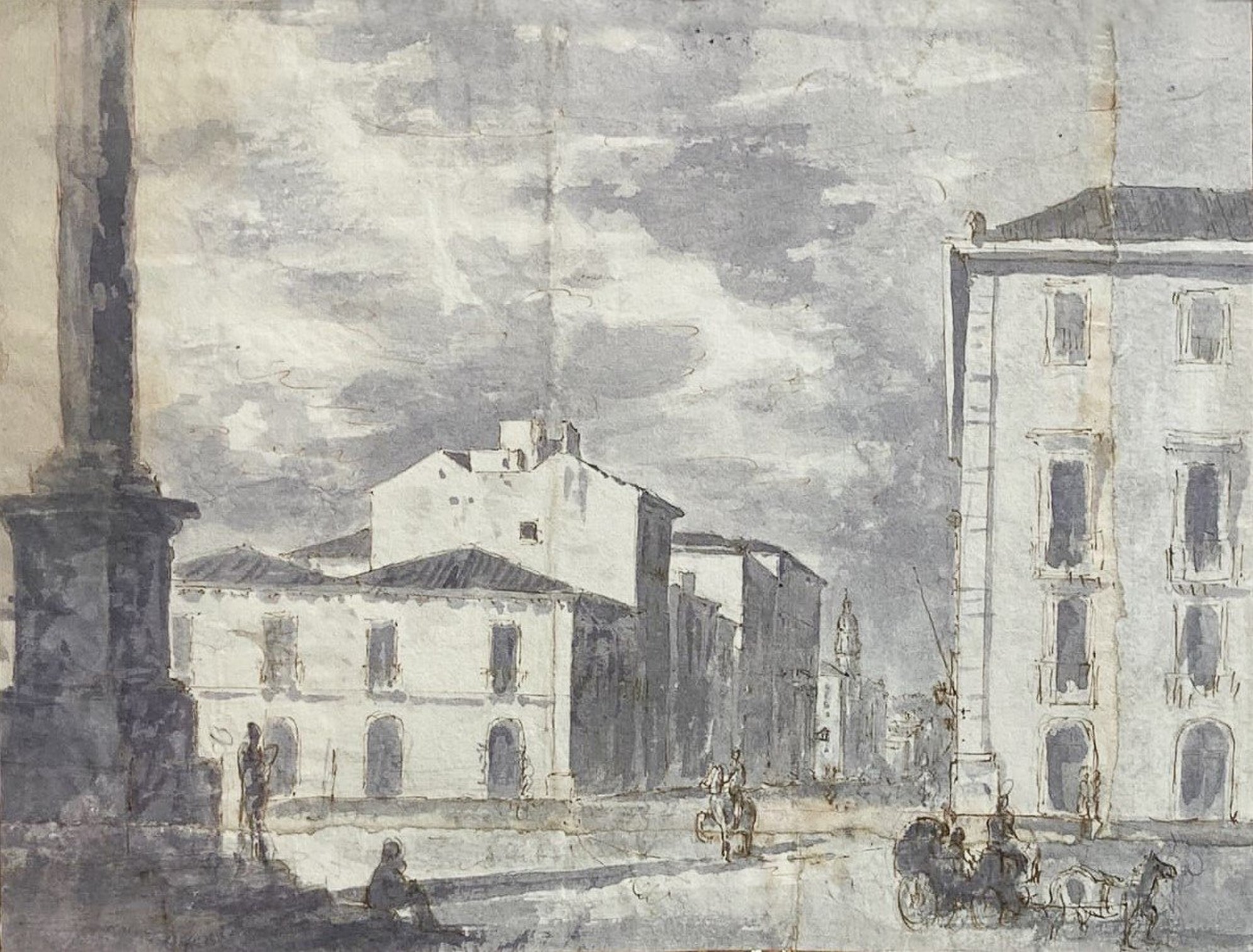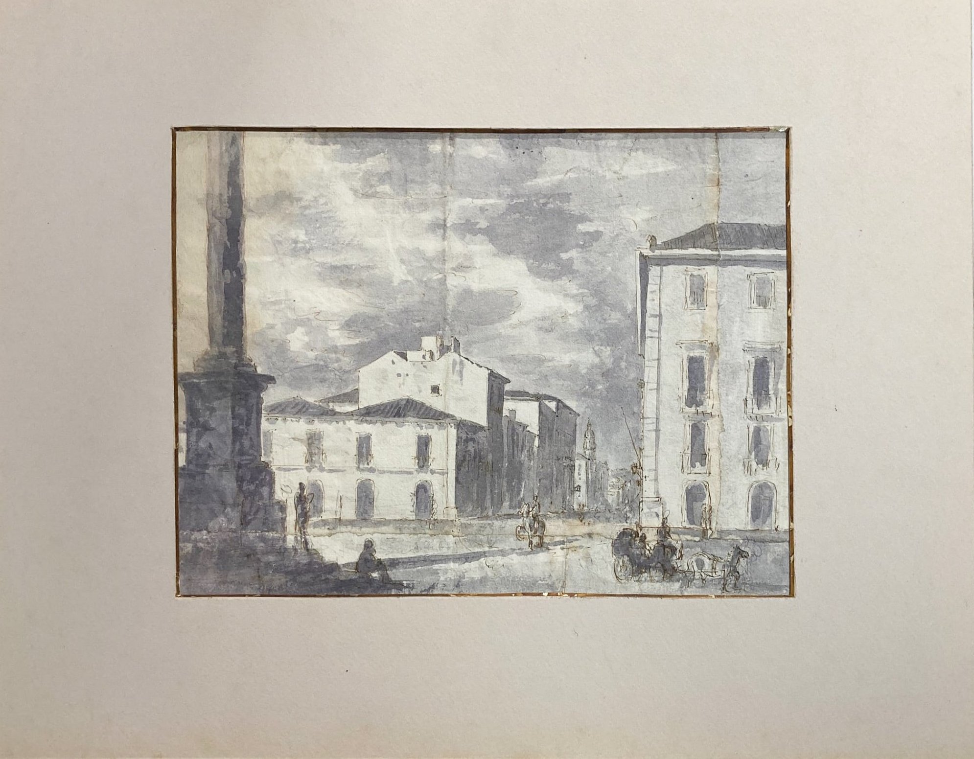 Disegno di autore anonimo raffigurante Piazza dei Martiri e via Vittorio Emanuele, (Catania, Sicilia) XIX secolo. Acquerello su carta a inchiostro bruno. Mm 180X250. Testimonianza storico-locale.