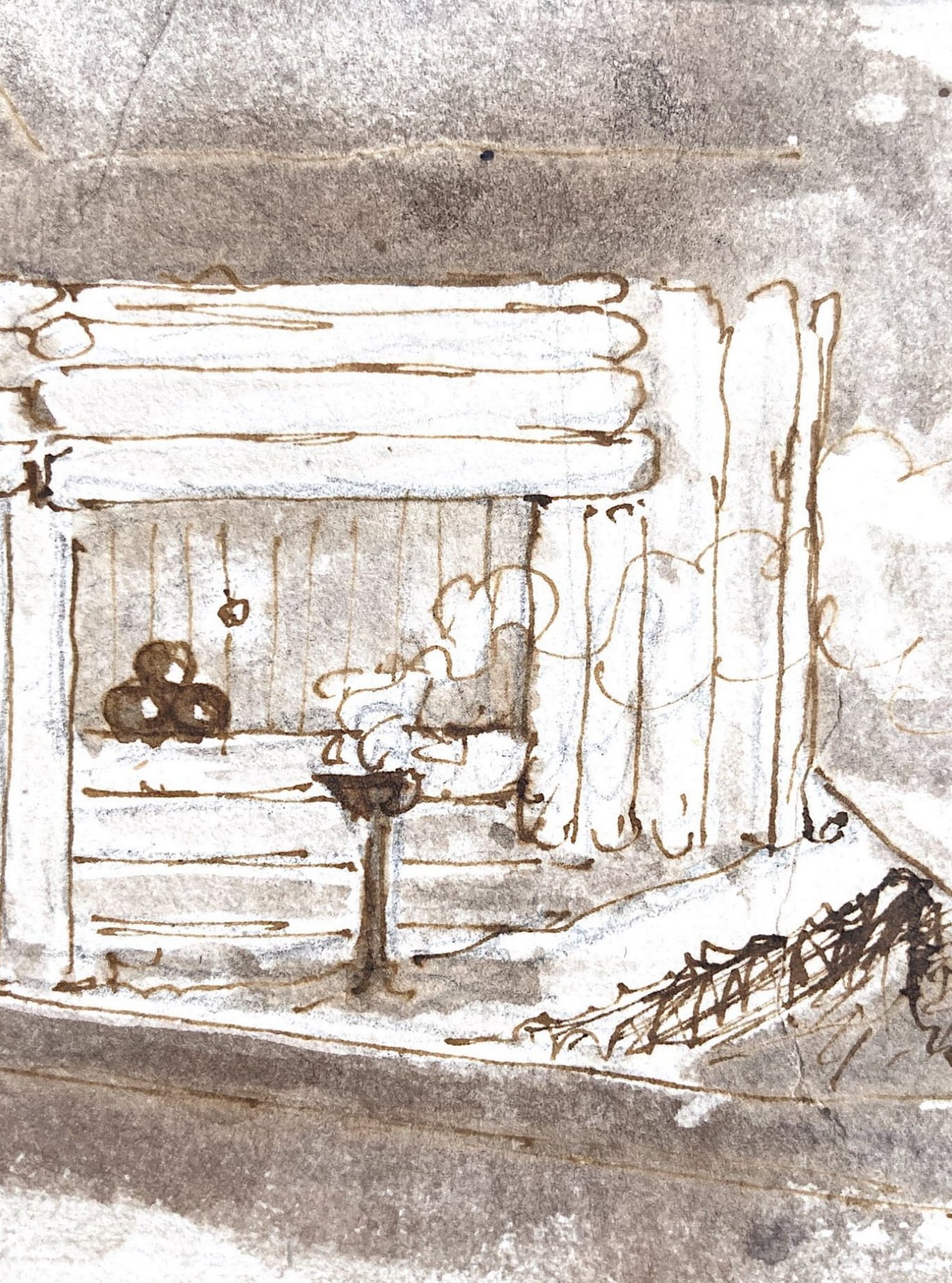 Disegno di autore anonimo raffigurante bottega per restauro barche del porto...