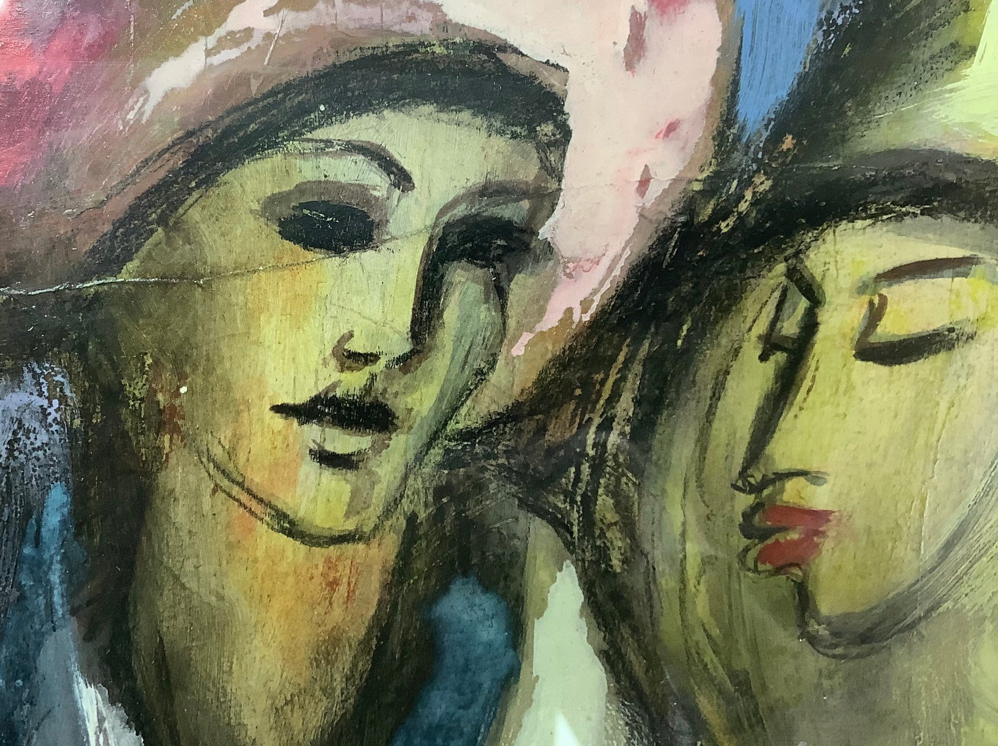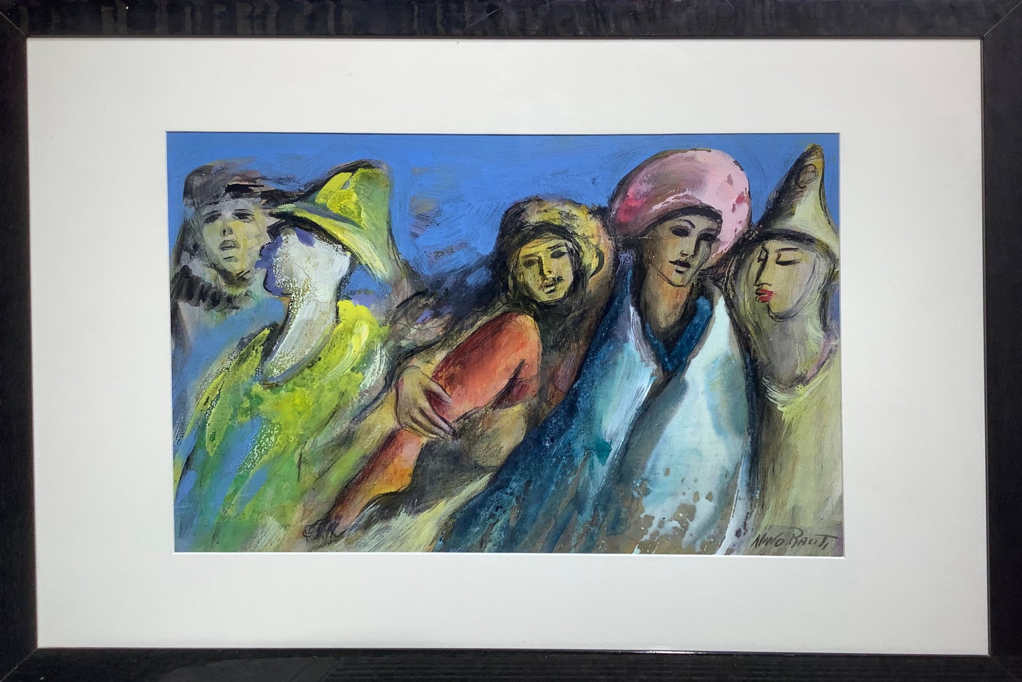Lotto 468 | Olio su cartoncino raffigurante 5 personaggi, Nino Raciti (Catania, 1939). Cm...
