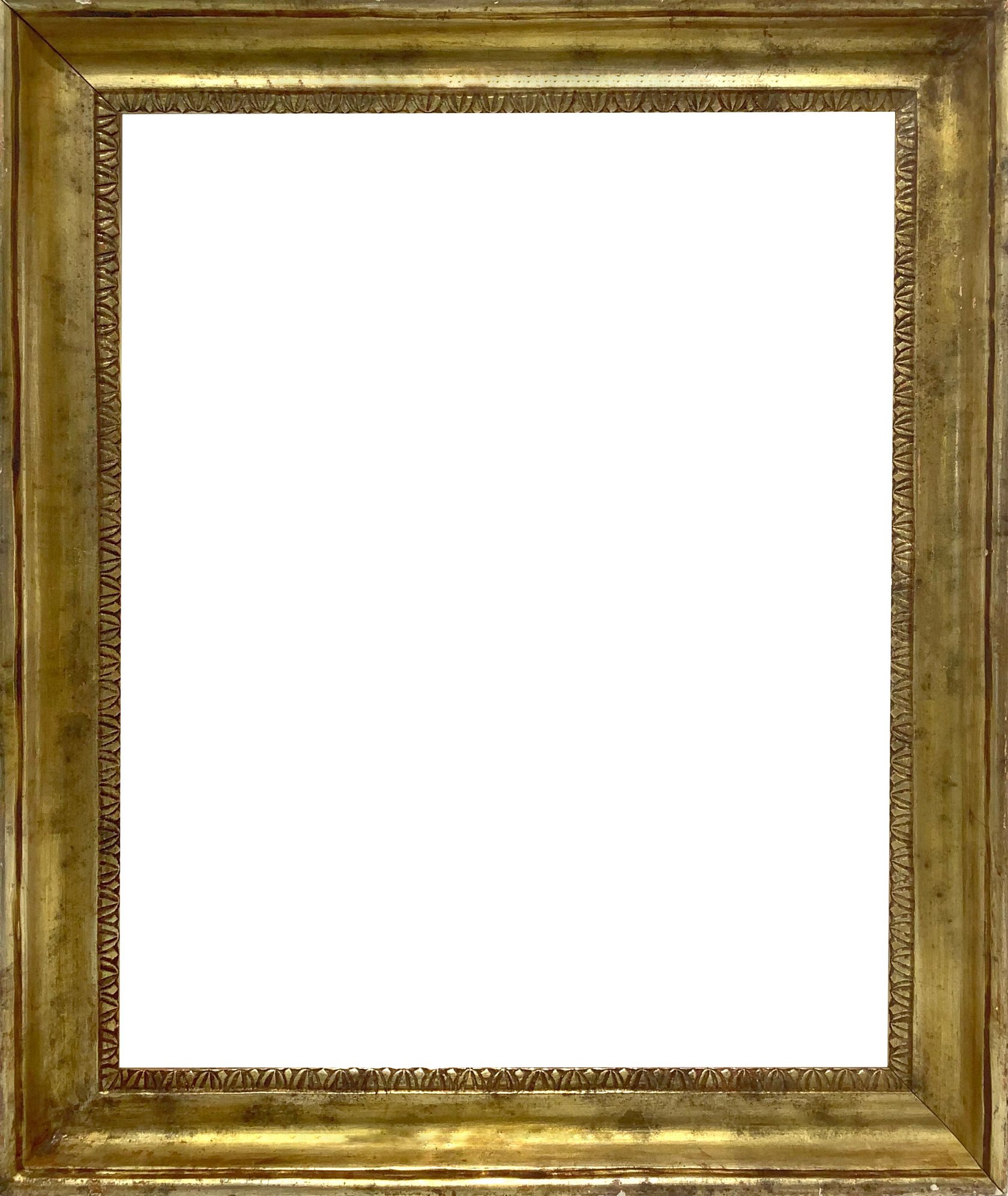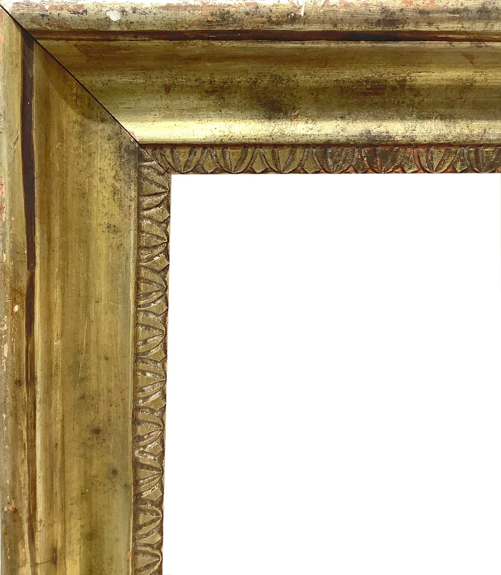 Cornice in legno a mezza canna dorata a foglia, nello stile del XIX secolo. Misure esterne cm 58x48,5. Misure interne cm 48x38.