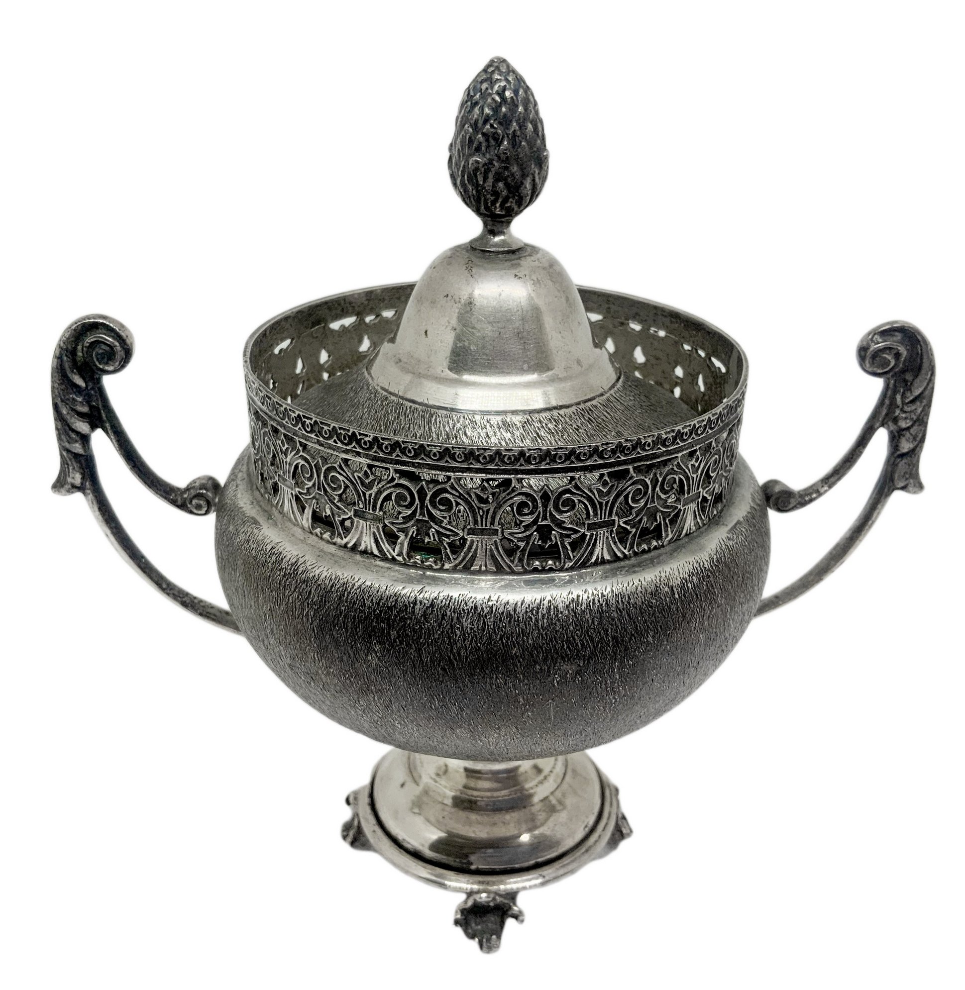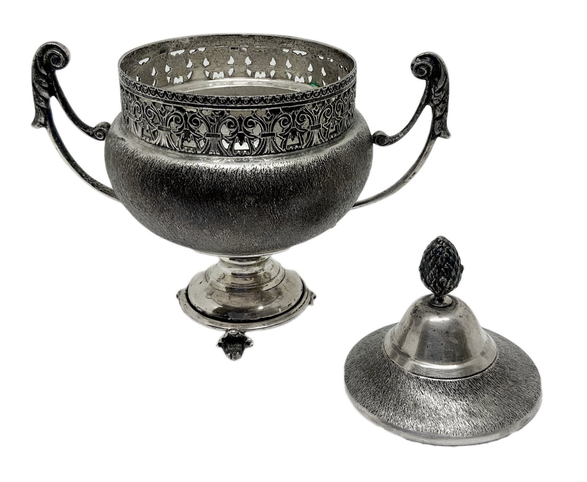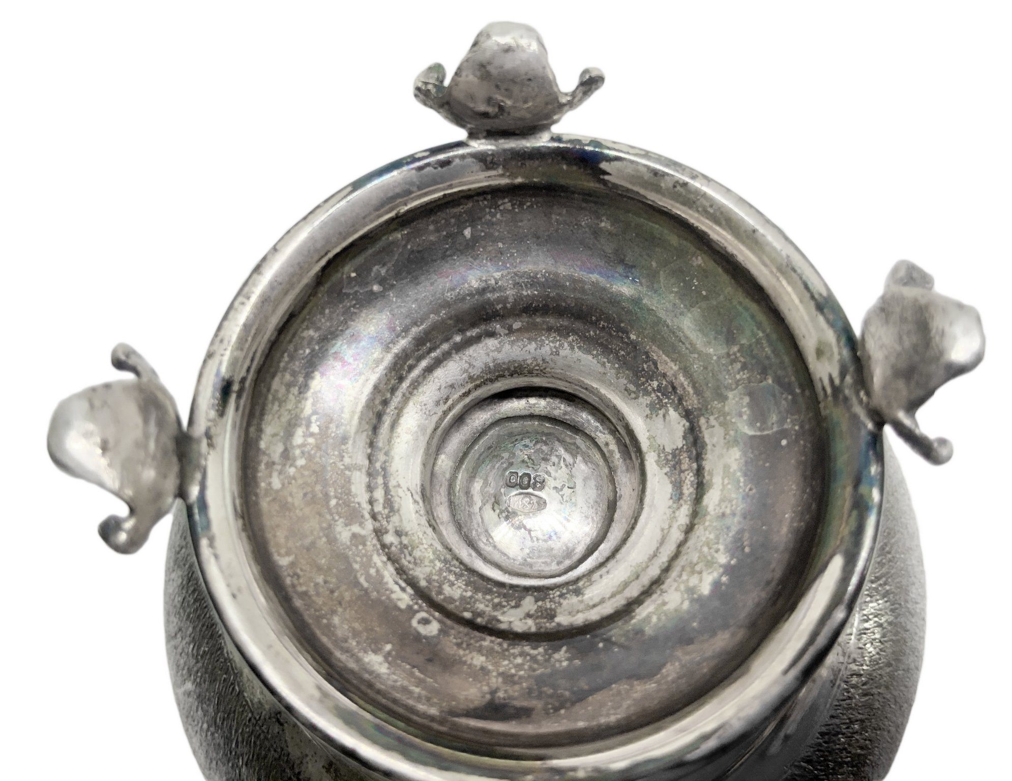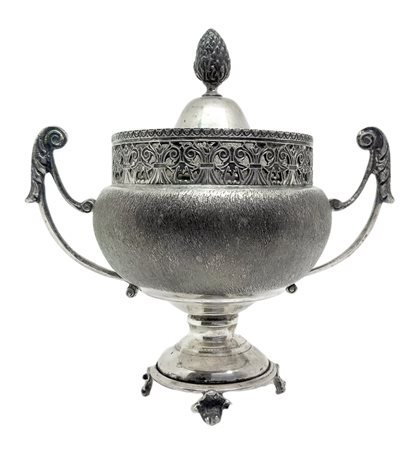 Zuccheriera in argento 800, primi ‘900. H cm 14. Peso gr 200.