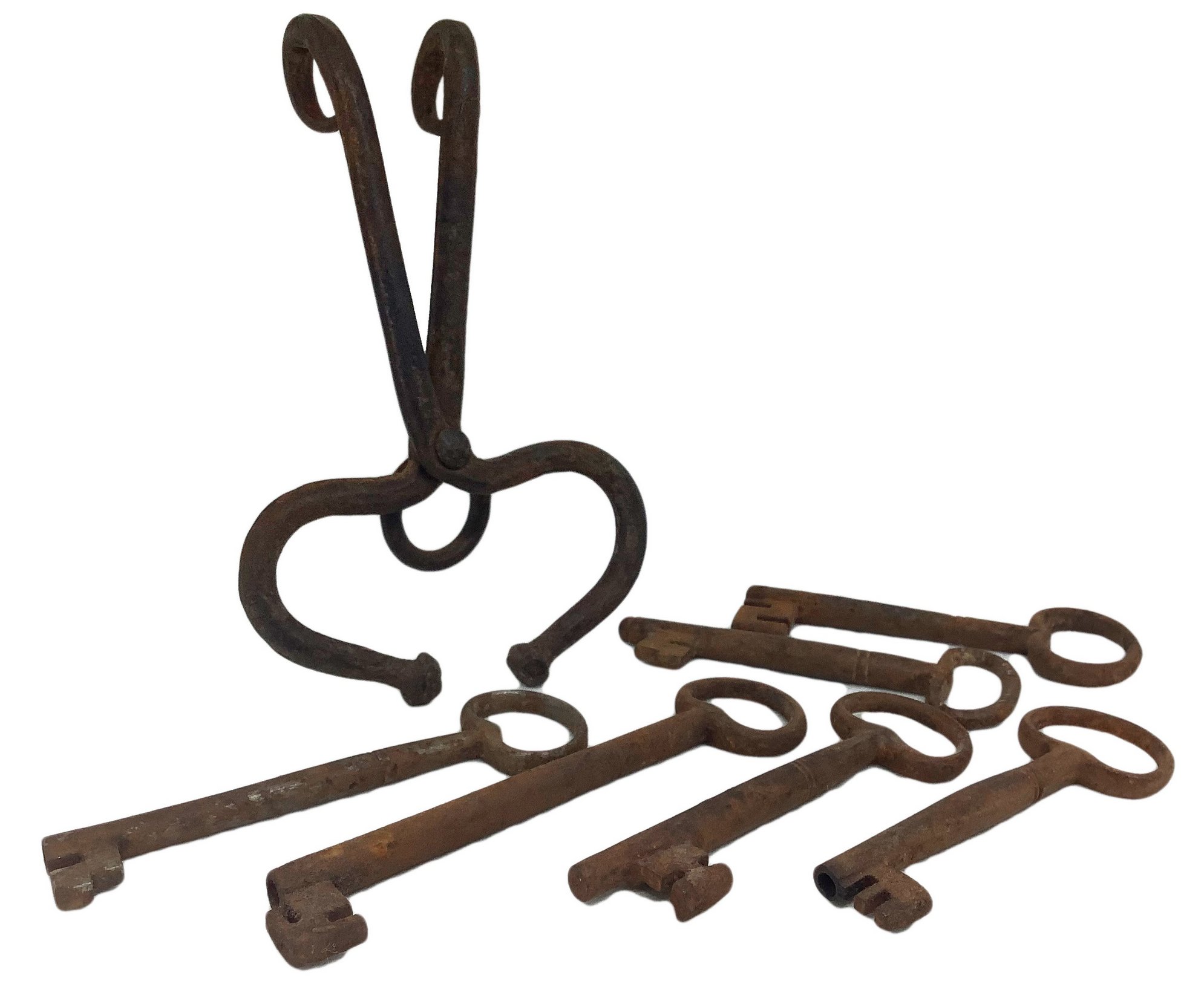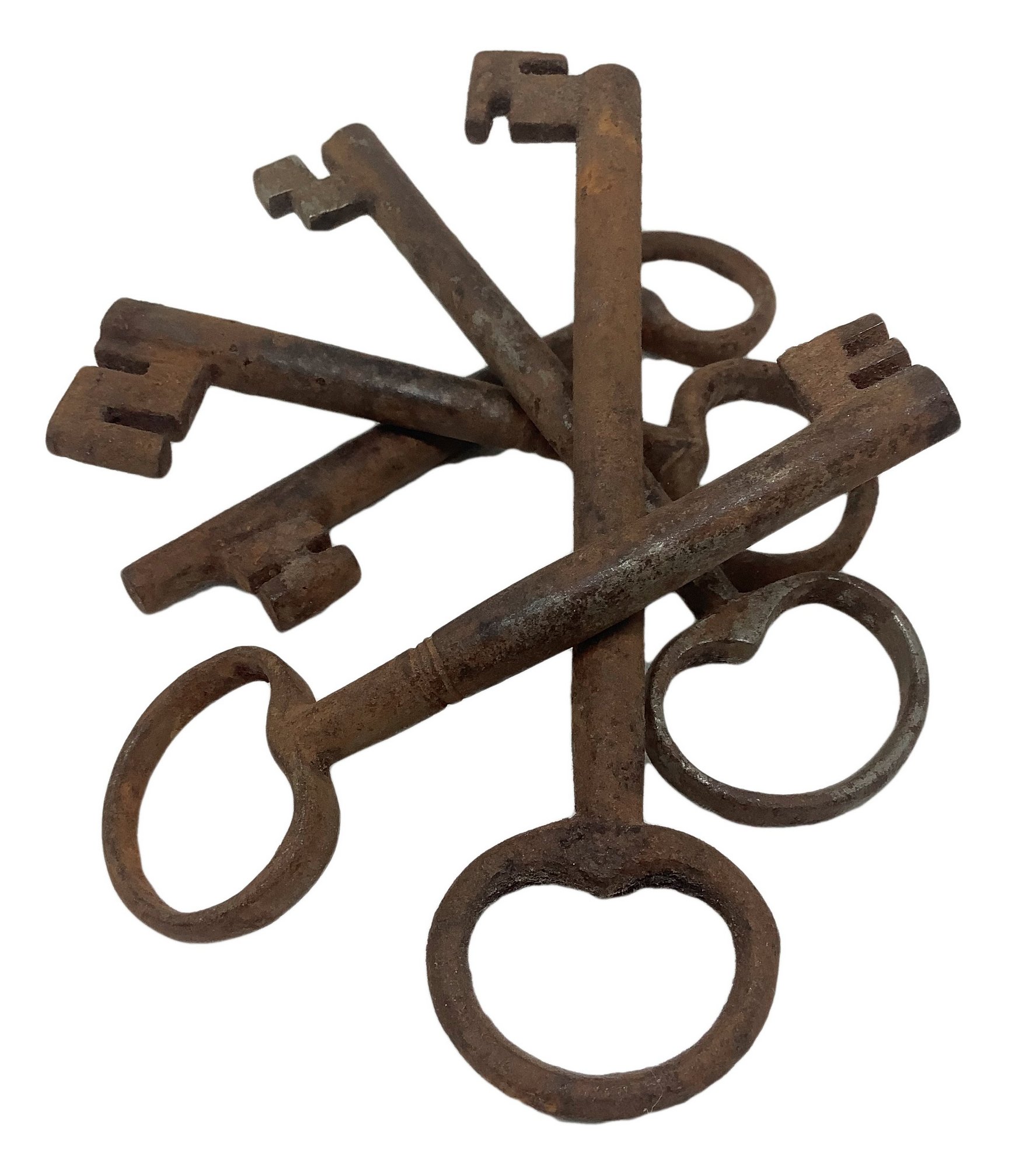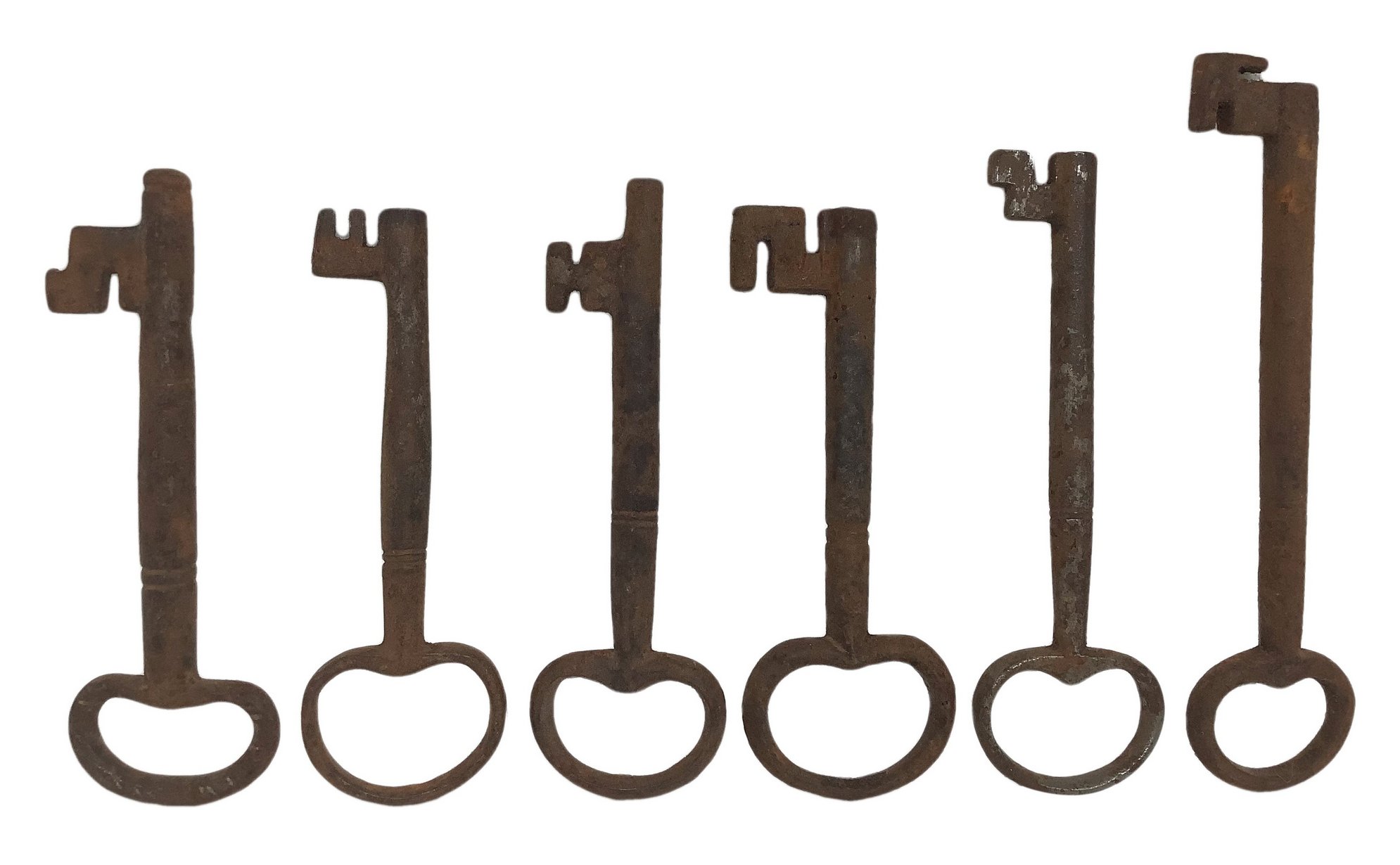 Gruppo n. 6 di chiavi antiche in ferro. Fine XIX secolo.