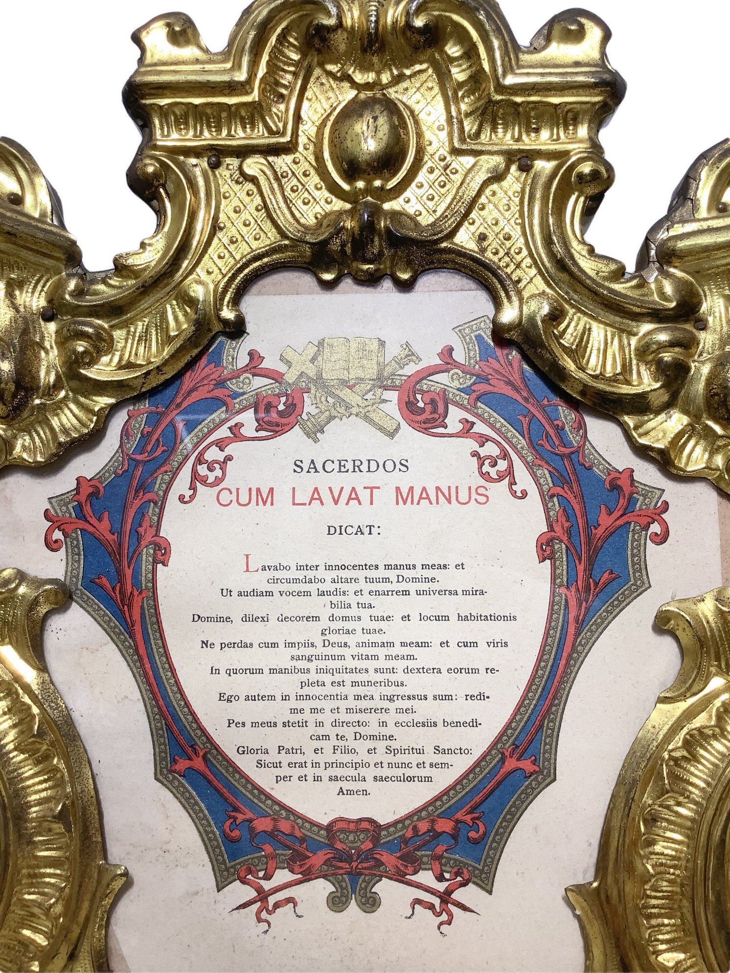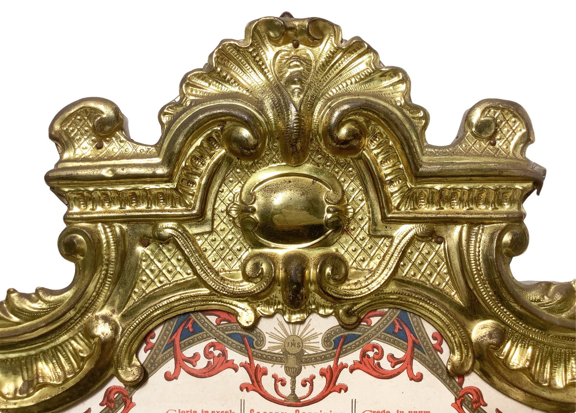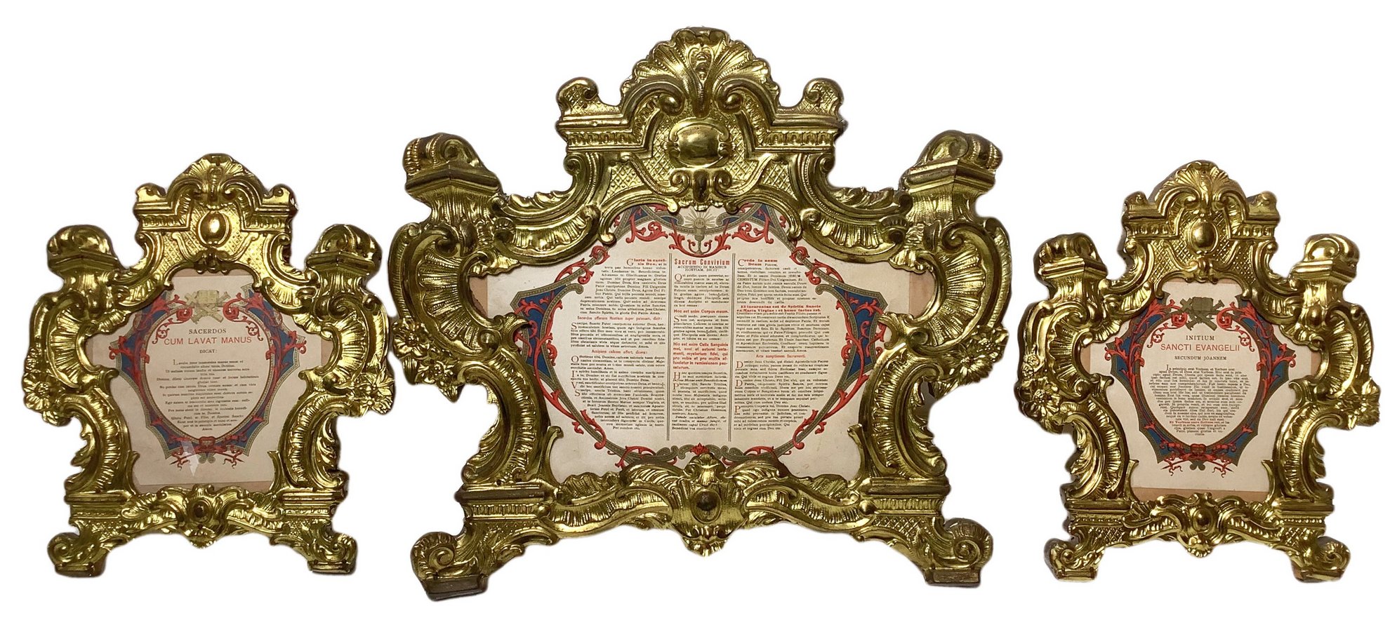Gruppo di tre Cartagloria da muro in metallo dorato e sbalzato, Sicilia, XIX...