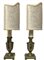 Coppia di piccoli lumi in bronzo dorato a forma di anfore, con ventole, XIX secolo. H cm 40.