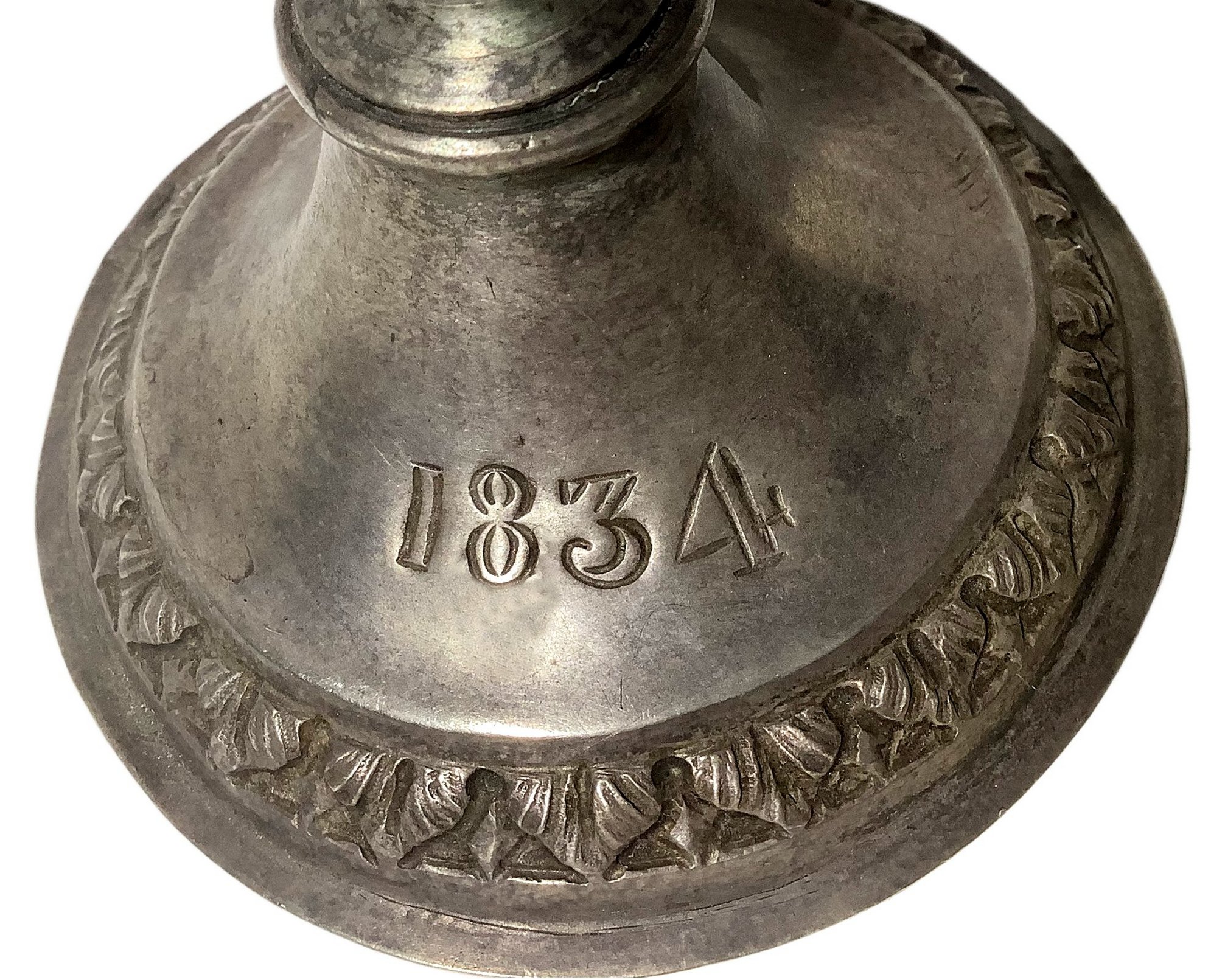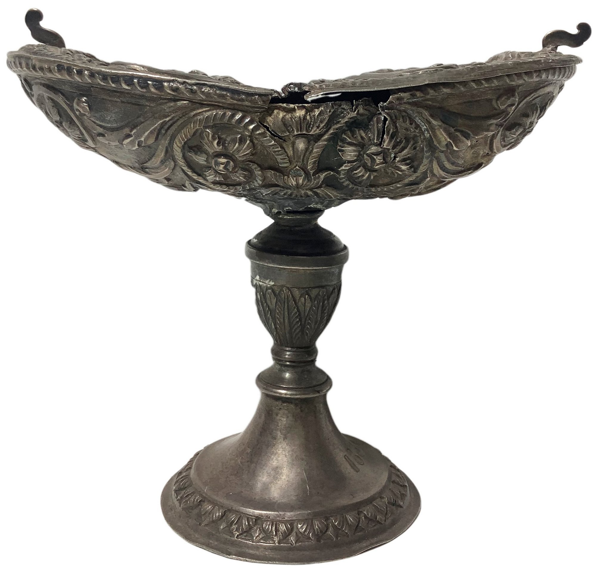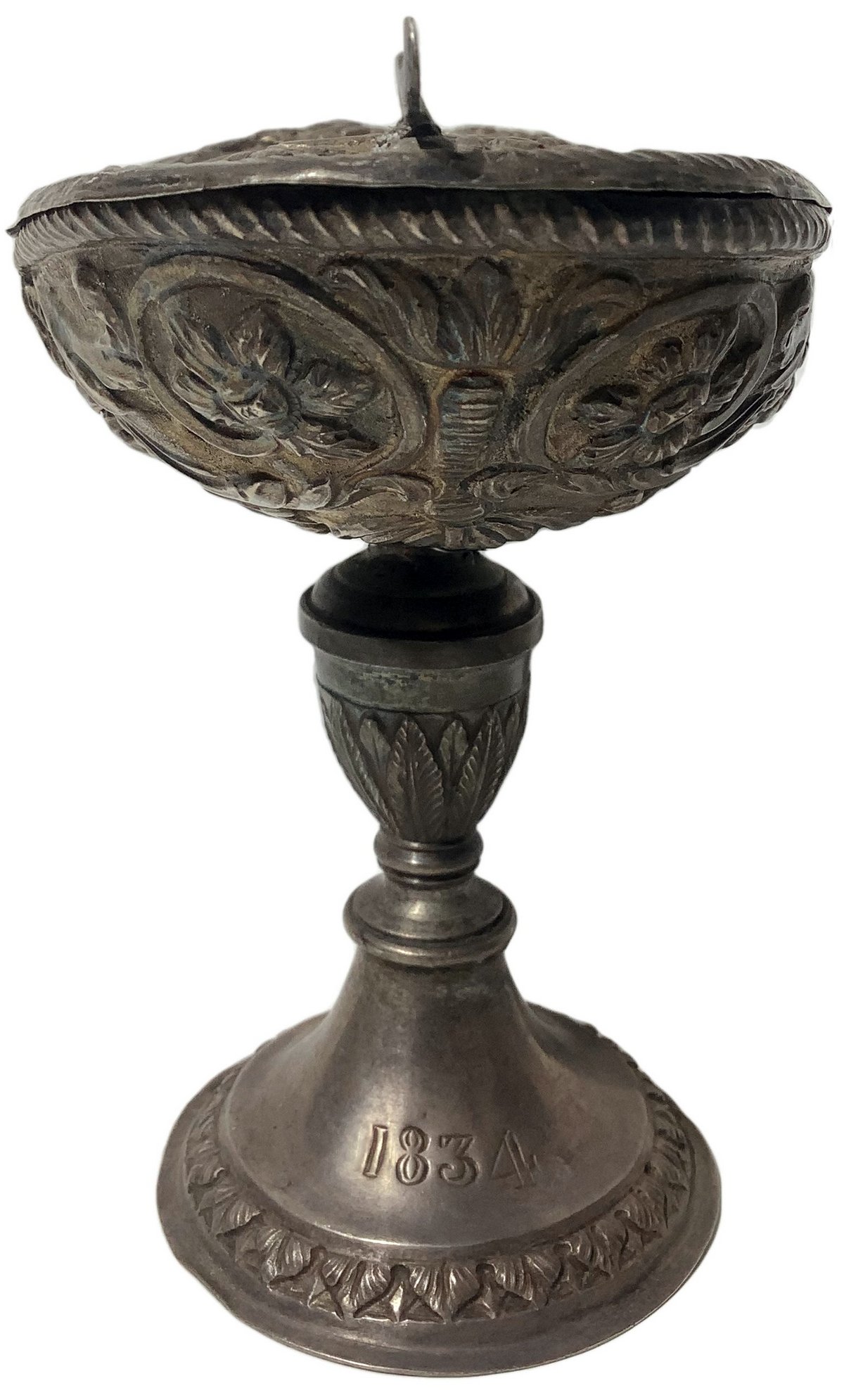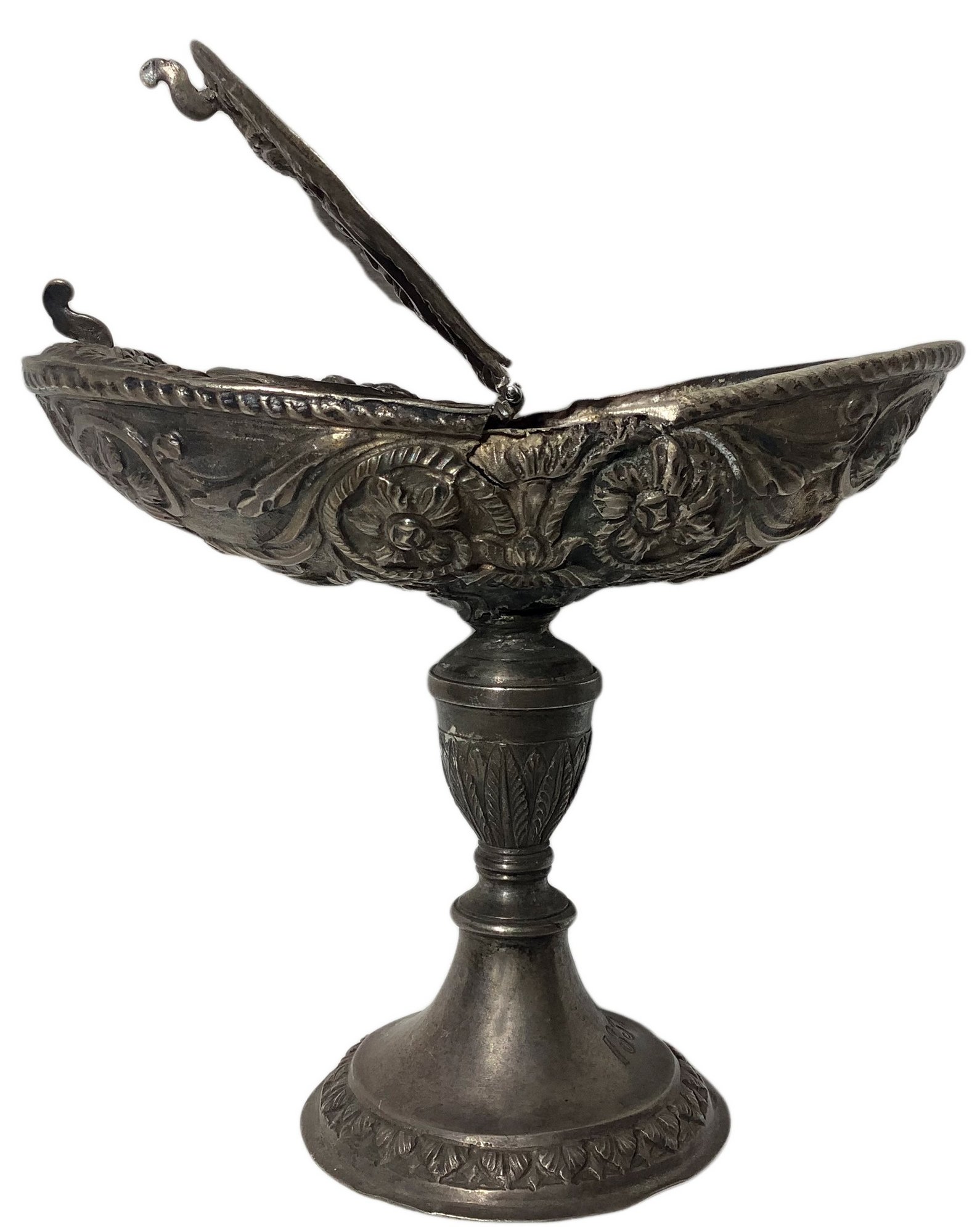 Lotto 528 | Navetta porta incenso in argento, sul coperchio raffigurazione di Sacra...