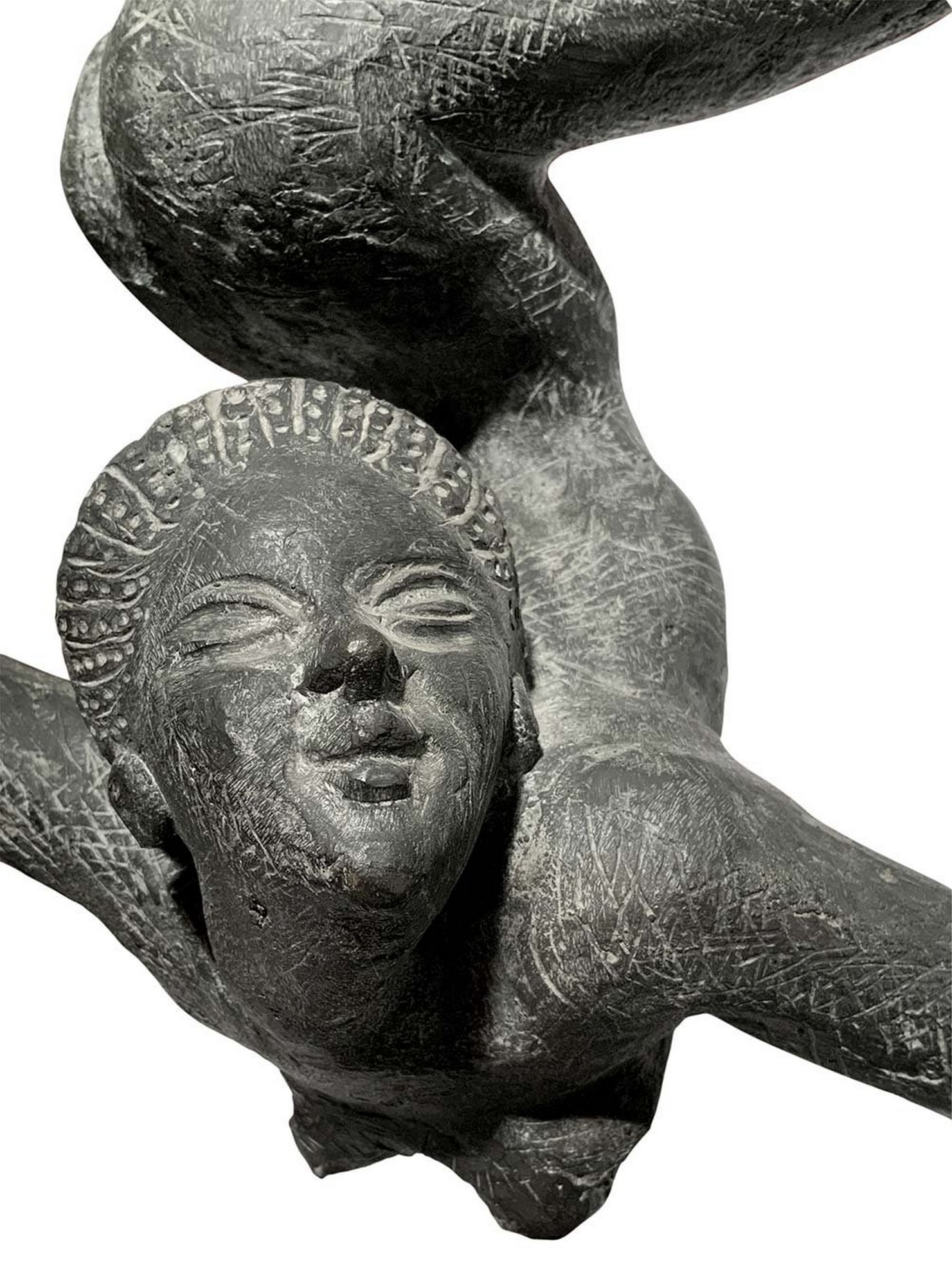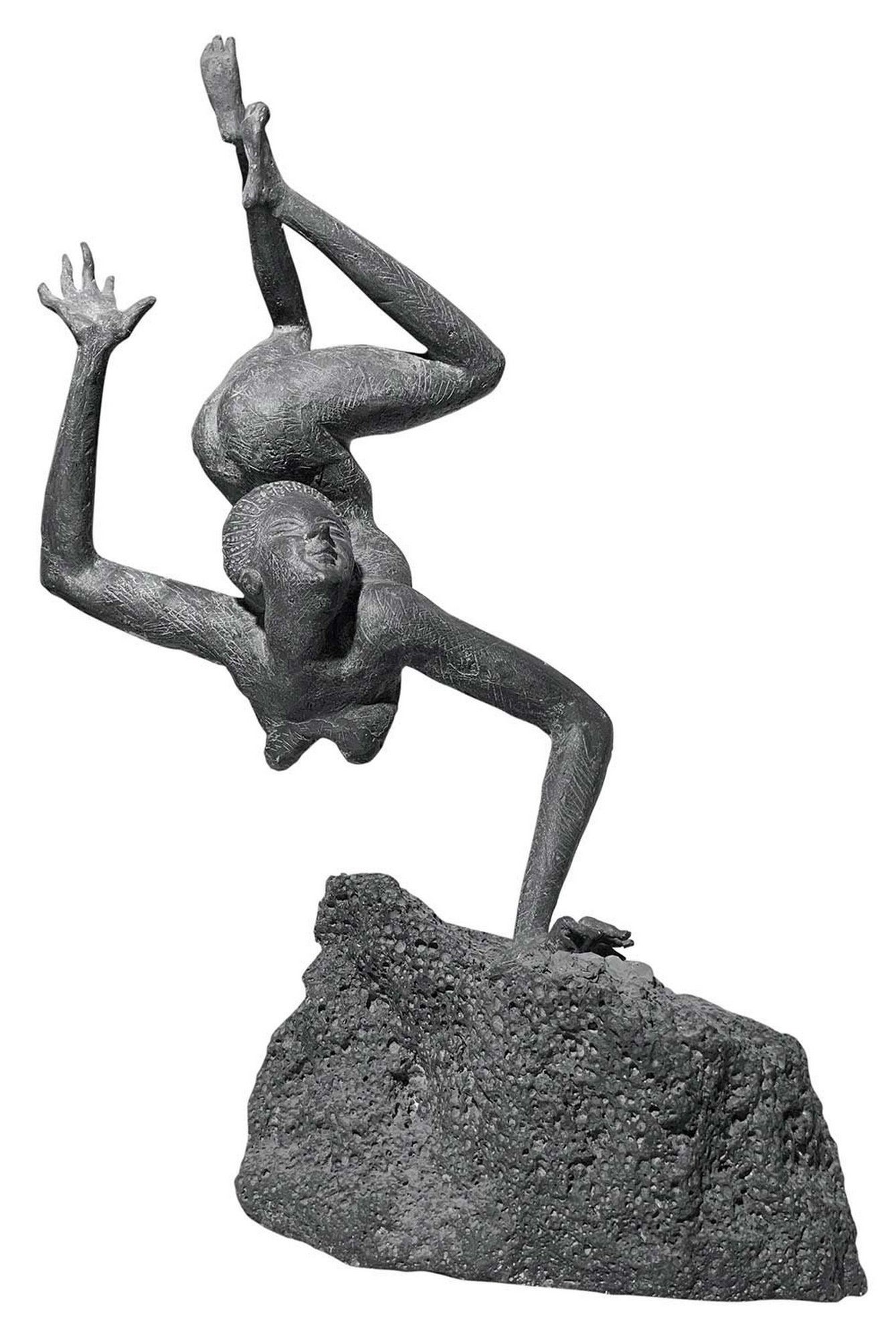Bronzo raffigurante "La Tarantola", Giordano Salvo (Catania,1907). "Opera a cera persa così denominata dallo scultore. Con base in pietra lavica cm 65, senza base H cm 54. Nudo di donna dal viso grecizzante in posizione inversa a testa in giù poggiante su una mano. "Scultore di notevole capacità, compagno di scuola di Emilio Greco. Conosce Adolfo Wildt di cui fu aiutante a Milano. A Catania fu propulsore di cultura incoraggiando giovani artisti siciliani emergenti e organizzando mostre nella sua Galleria di S. Demetrio ai quattro canti. Numerose le sue opere a Catania."STUDIO ASOR