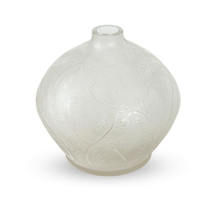 LALIQUE RENE' Plumes Vaso in vetro bianco soffiato in forma. Modello creato...