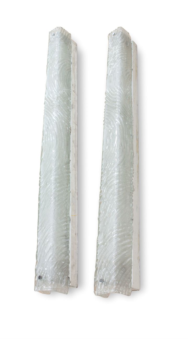 BAROVIER E TOSO ATTR. A Due plafoniere in vetro rugiadoso con supporto in...