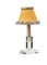 Lampada da tavolo ricavata da un blocco di cristallo scolpito e lucidato a mola. Candela in vetro satinato, paralume in tela