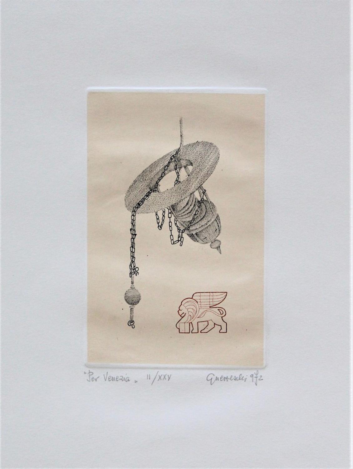 Giuseppe Guerreschi PER VENEZIA acquaforte su carta, battuta cm 18x12 su...