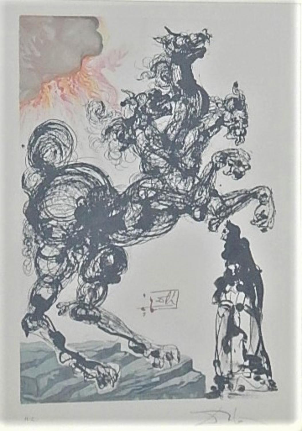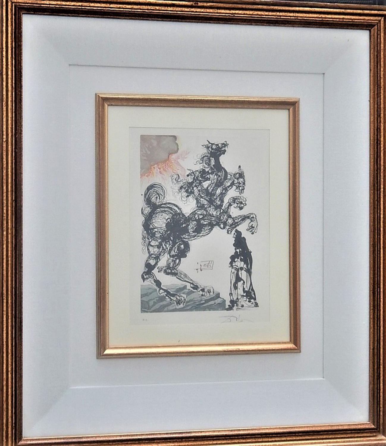 Salvador Dali' CERBERO xilografia su carta, battuta cm 25x17, su foglio...