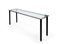 Console con struttura in ferro verniciato e piano in cristallo contenuto da fasce cromate.