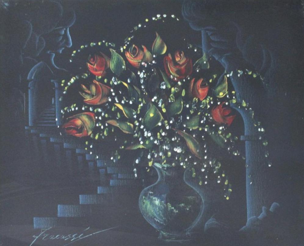 Umberto Fracassi FIORI ROSE tecnica mista su tela, cm 50x60 firma eseguito...