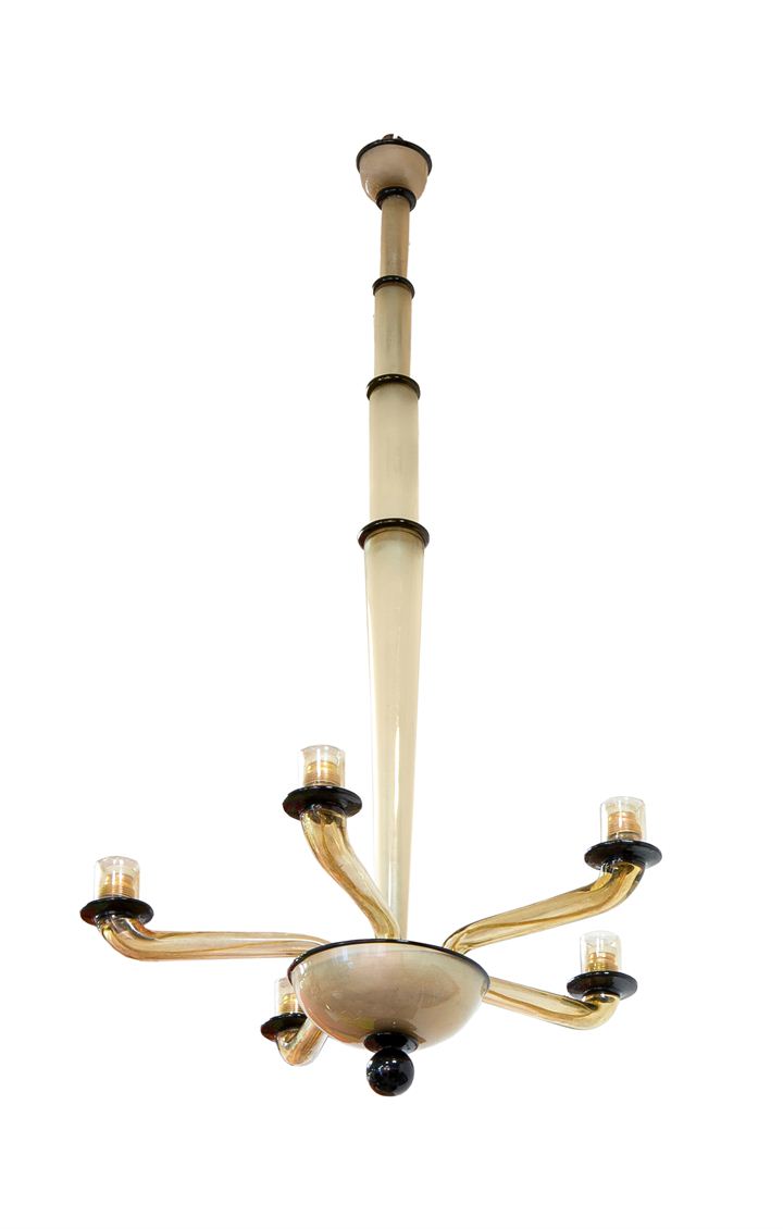 Lotto 1350 | LAMPADARIO Lampadario a cinque bracci in vetro color paglierino e profili in...