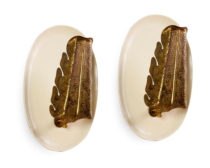 COLLI PIER LUIGI Due appliques Schermi a foglia in ferro battuto e dorato,...