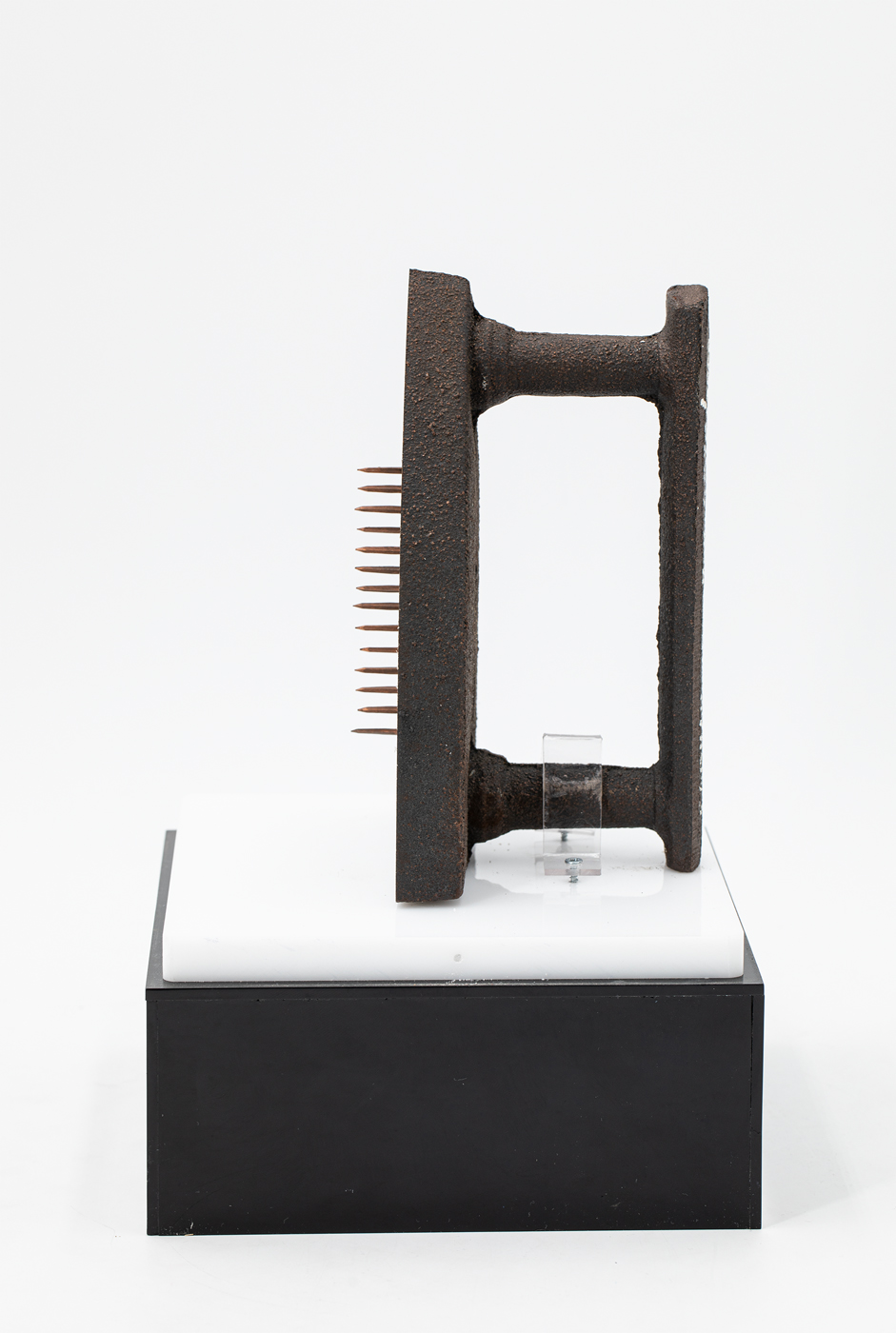 Opera multipla realizzata con ferro da stiro in ghisa e chiodi