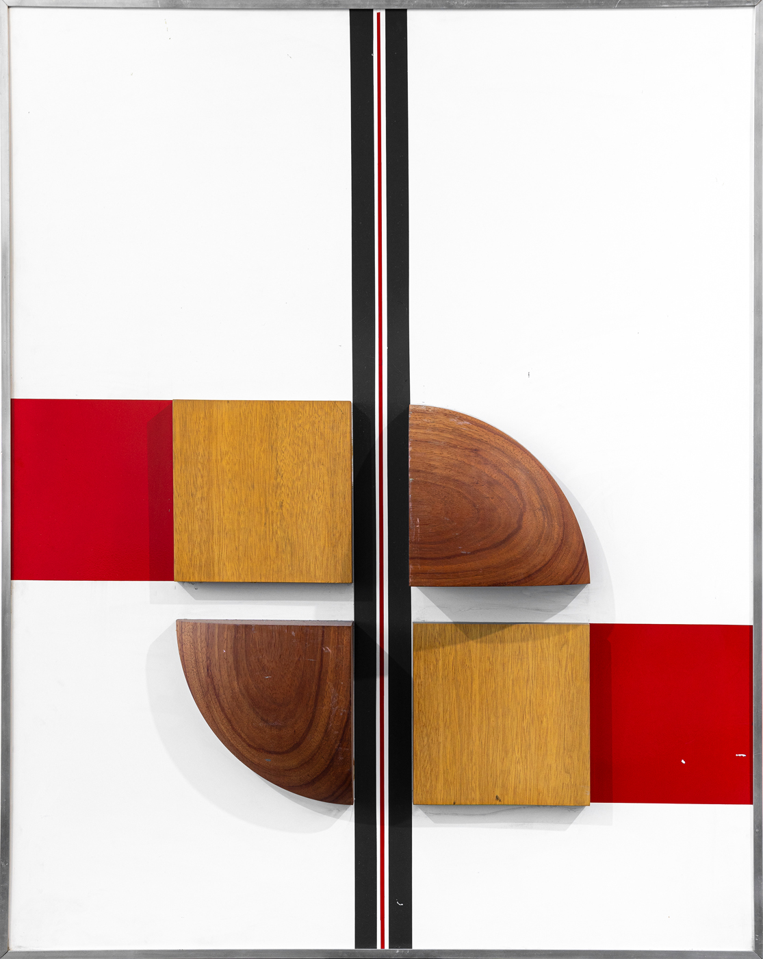 Tecnica mista, collage e applicazione di legni sagomati su tavola