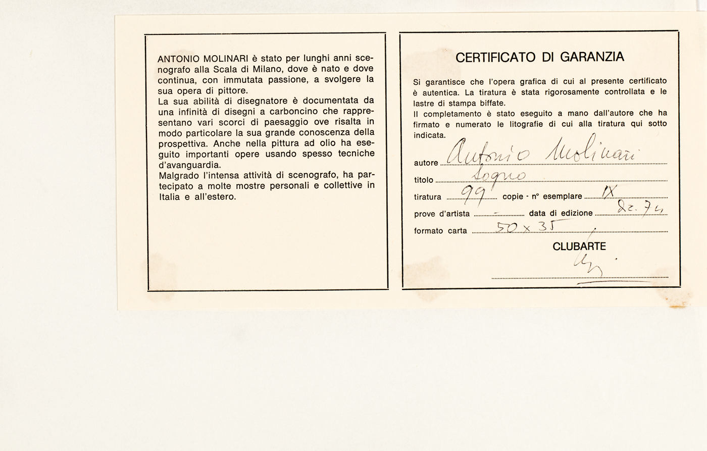 Firma e numerazione (Esemplare 79/99) a matita al fronte