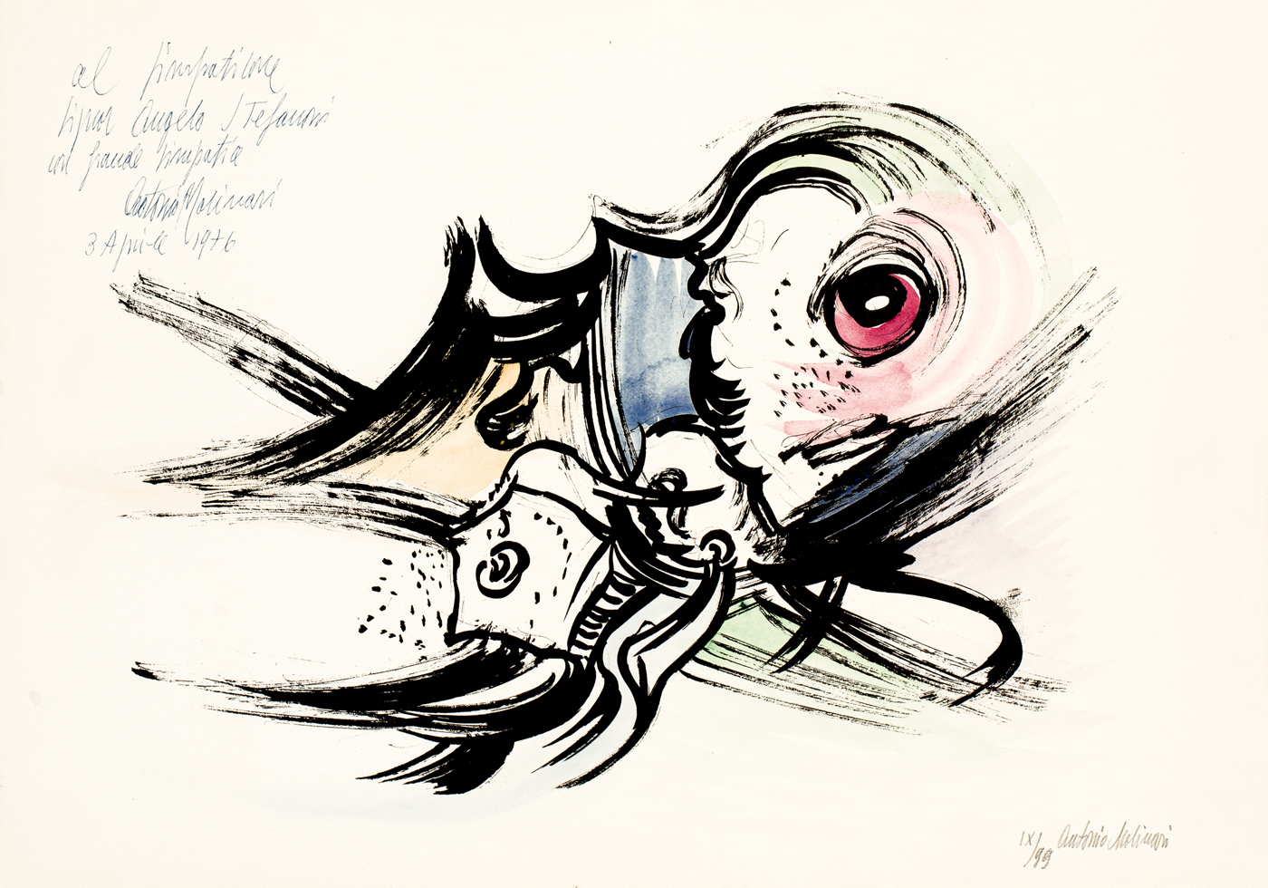 Firma, dedica ad personam e numerazione (Esemplare IX/99) a matita al fronte