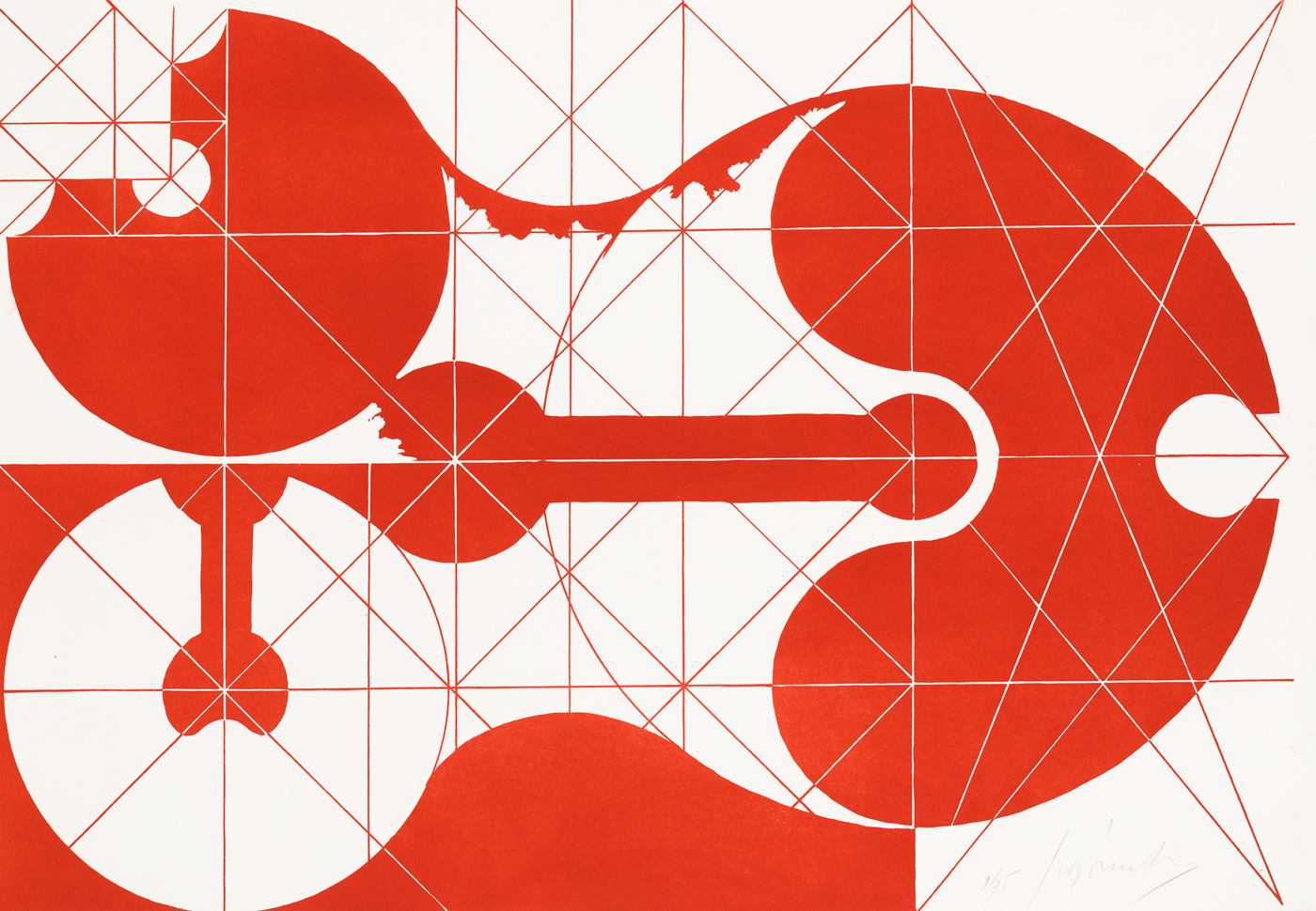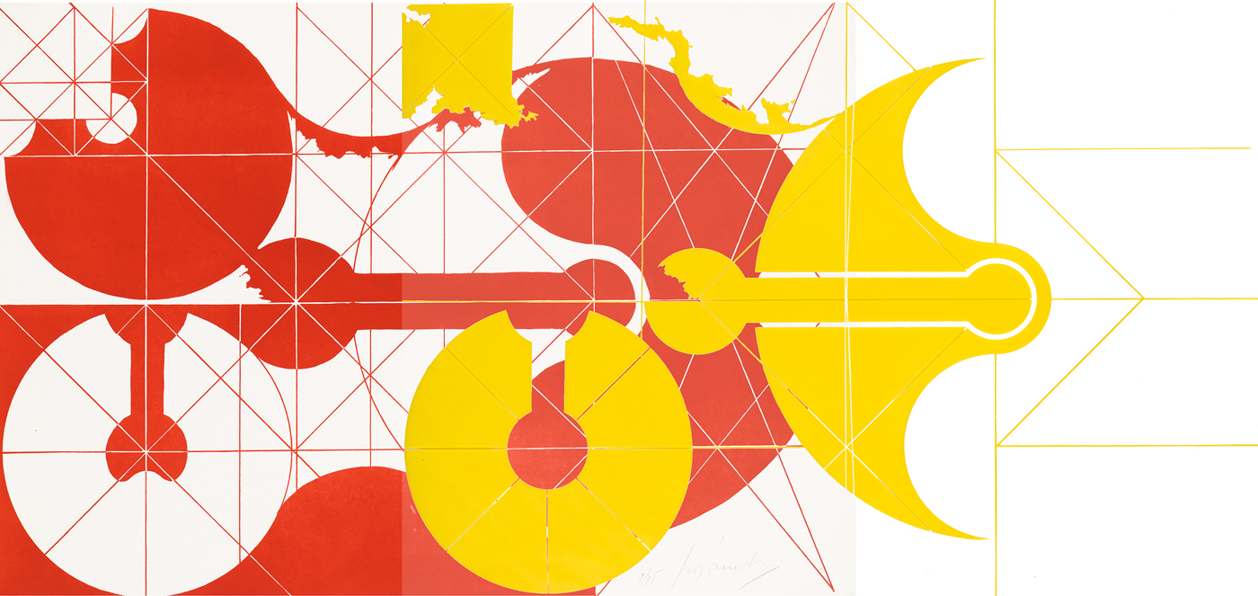 Litografia su carta con sovrapposizione di acetato serigrafato