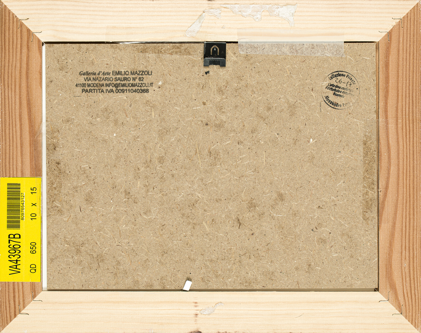 Etichetta della Galleria Emilio Mazzoli (MO) al retro